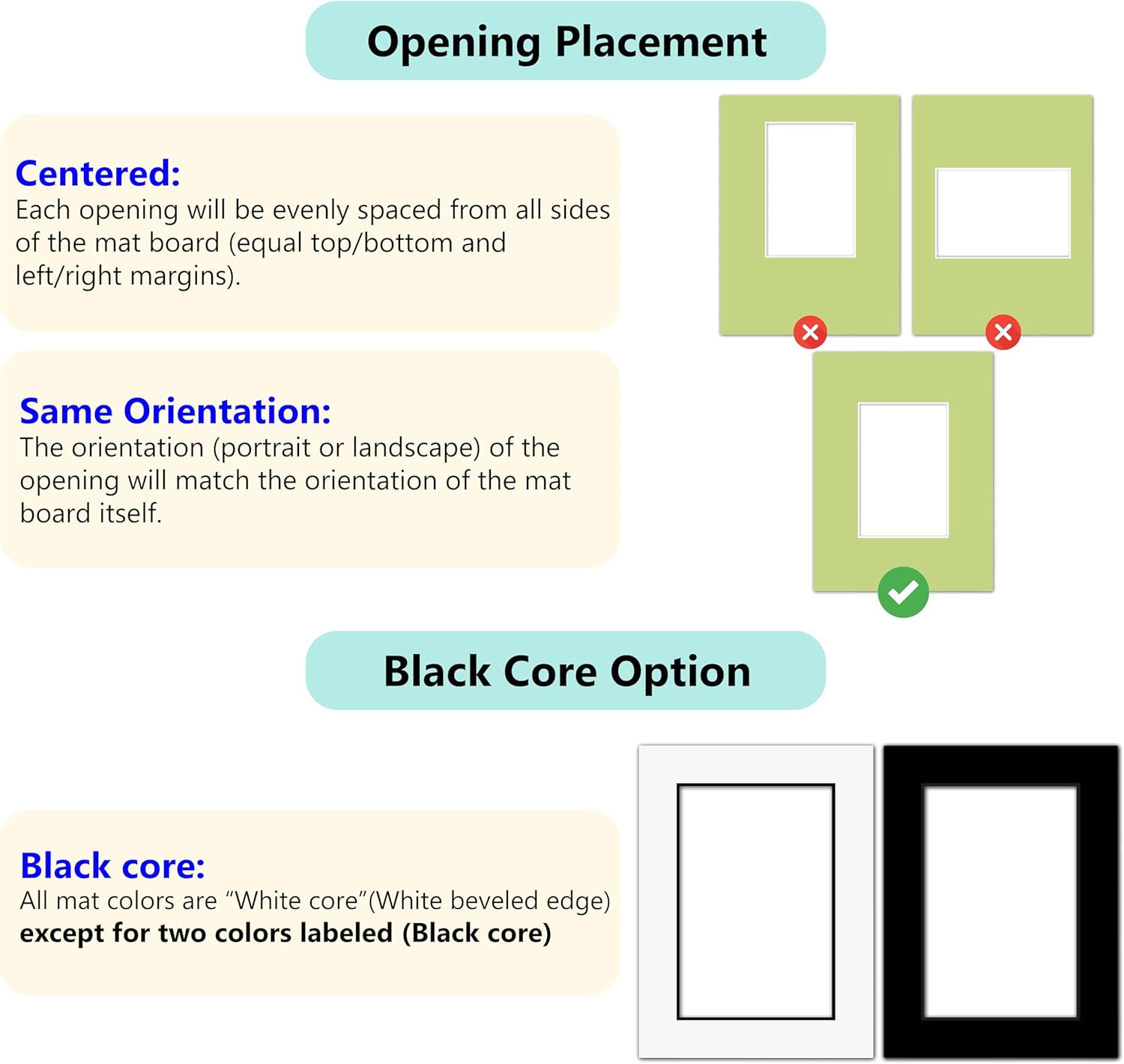 - Premium 4-ply matboard with precision 45° beveled cut for a professional gallery look