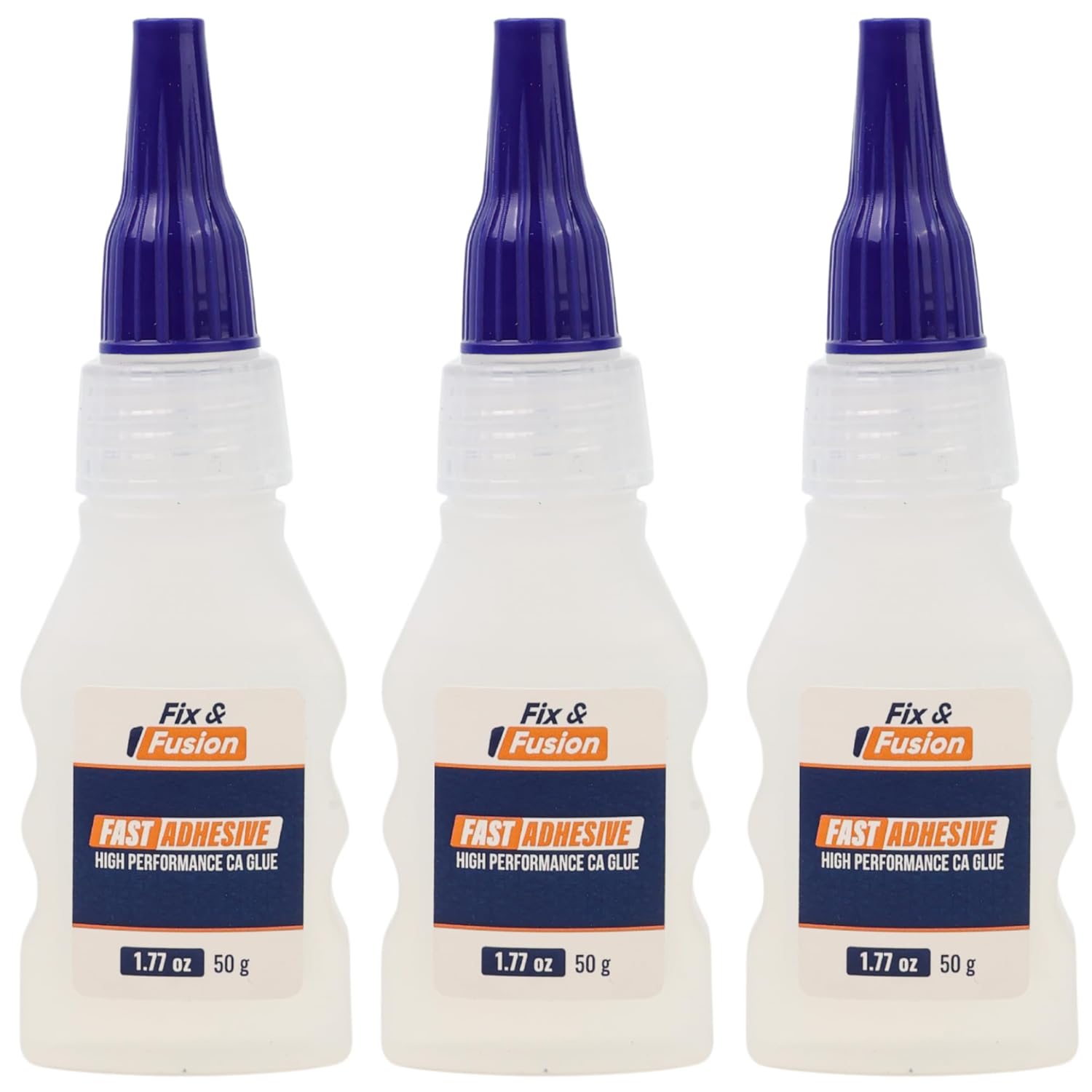 FIX & FUSION Ca Super Glue (1.77 Oz), Fast Adhesive/Cyanoacrylate Glue for Woodworking, Plastic, Rubber, Granite, DIY & Industrial, (3 Pack)