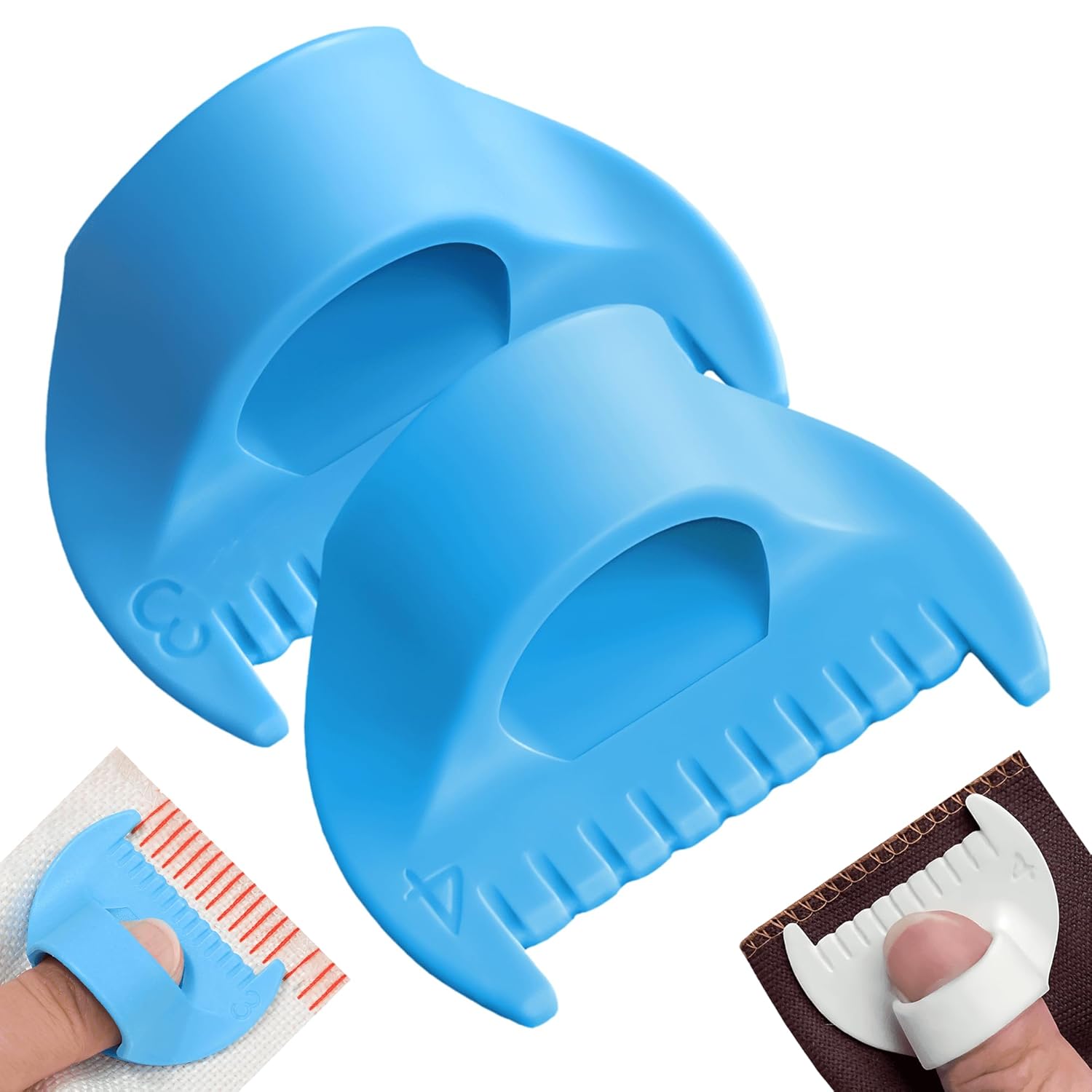 2 PCS Edge Lock Seam Guide, Mini Sewing Finger Ruler for Hand Sewing, DIY Sewing Kit Tool, Sewing Needle Gauge Measuring Guide Blue, 3mm+4mm