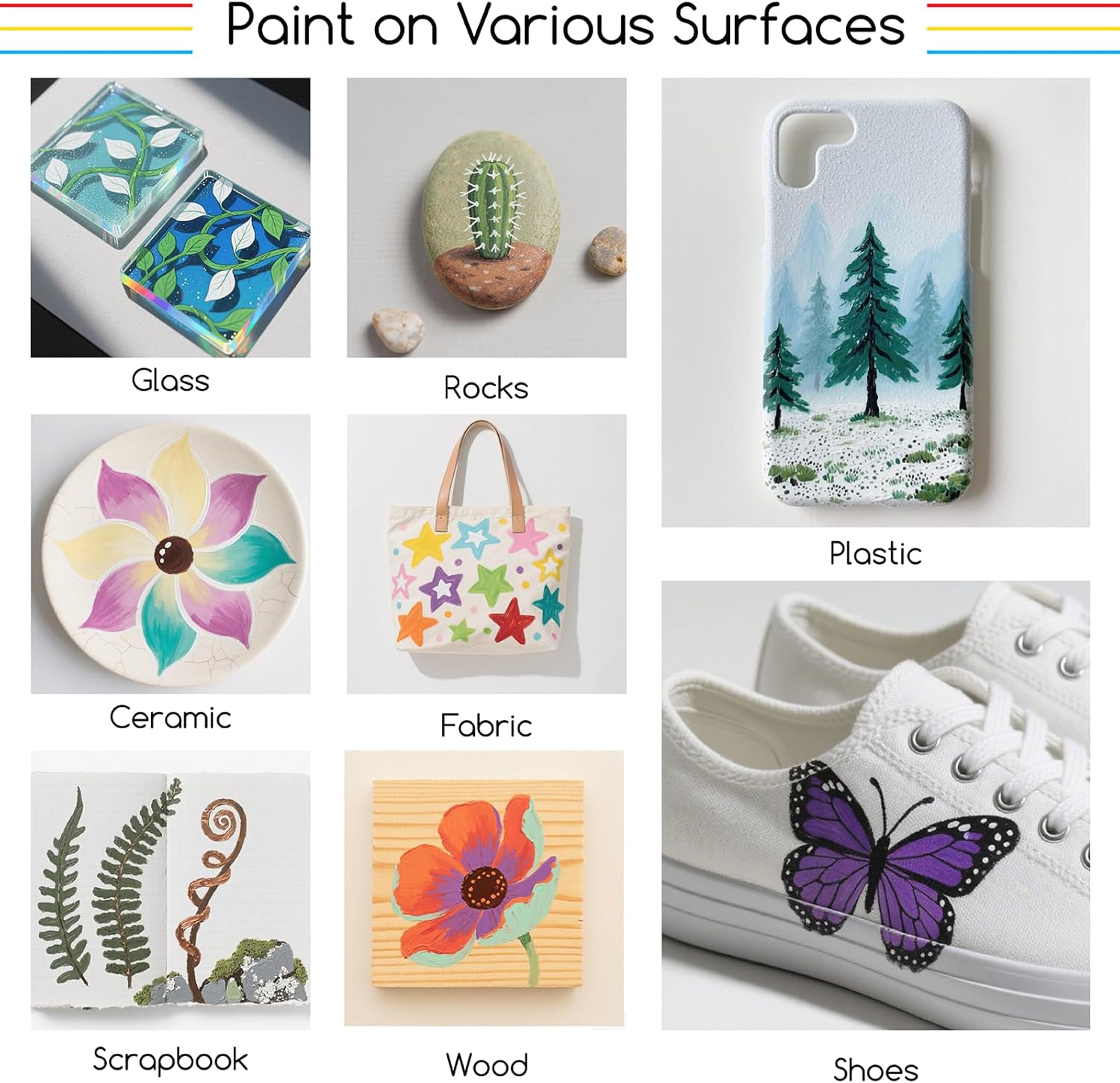 - Quick-Drying & Waterproof: Quick-dry acrylic ink no-bleeding and supports smooth layering, paint markers making your creative process faster and more efficient. Once dry, the colors stay vibrant, waterproof, and resistant to smudging or rubbing, keeping your artwork fresh over time. Perfect for decorating mugs, crafting DIY gifts, or painting on rocks, tβs a must-have in the craft supplies toolkit of friends