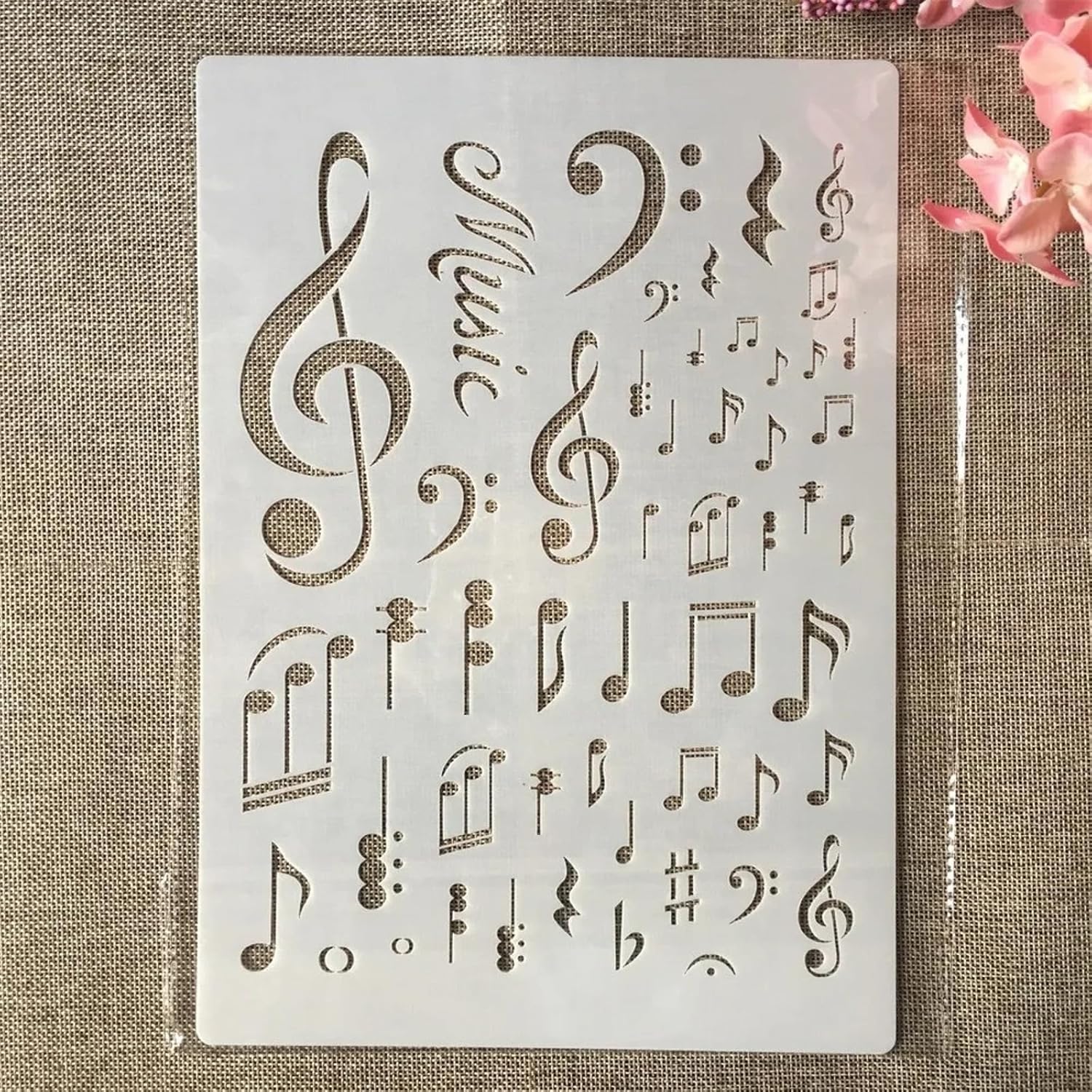 TIAMECH A4 Reusable Music Stencil for Painting - Music Symbol Notes Layering Template, DIY Wall Art, Wood Furniture, Scrapbook & Crafts (8.3x11.7inch)