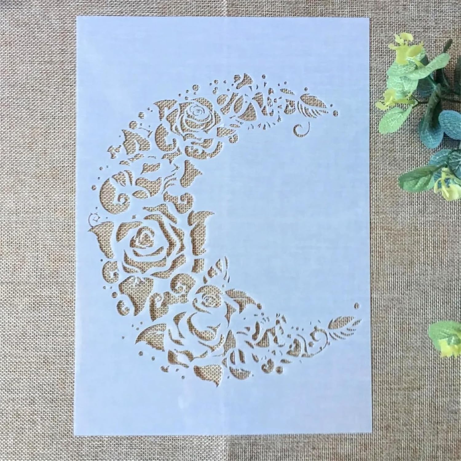 TIAMECH A4 Reusable Moon Flower Stencil for Painting - Rose Crescent Layering Template, DIY Wall Art, Wood Furniture, Scrapbook & Crafts (8.3x11.7inch)