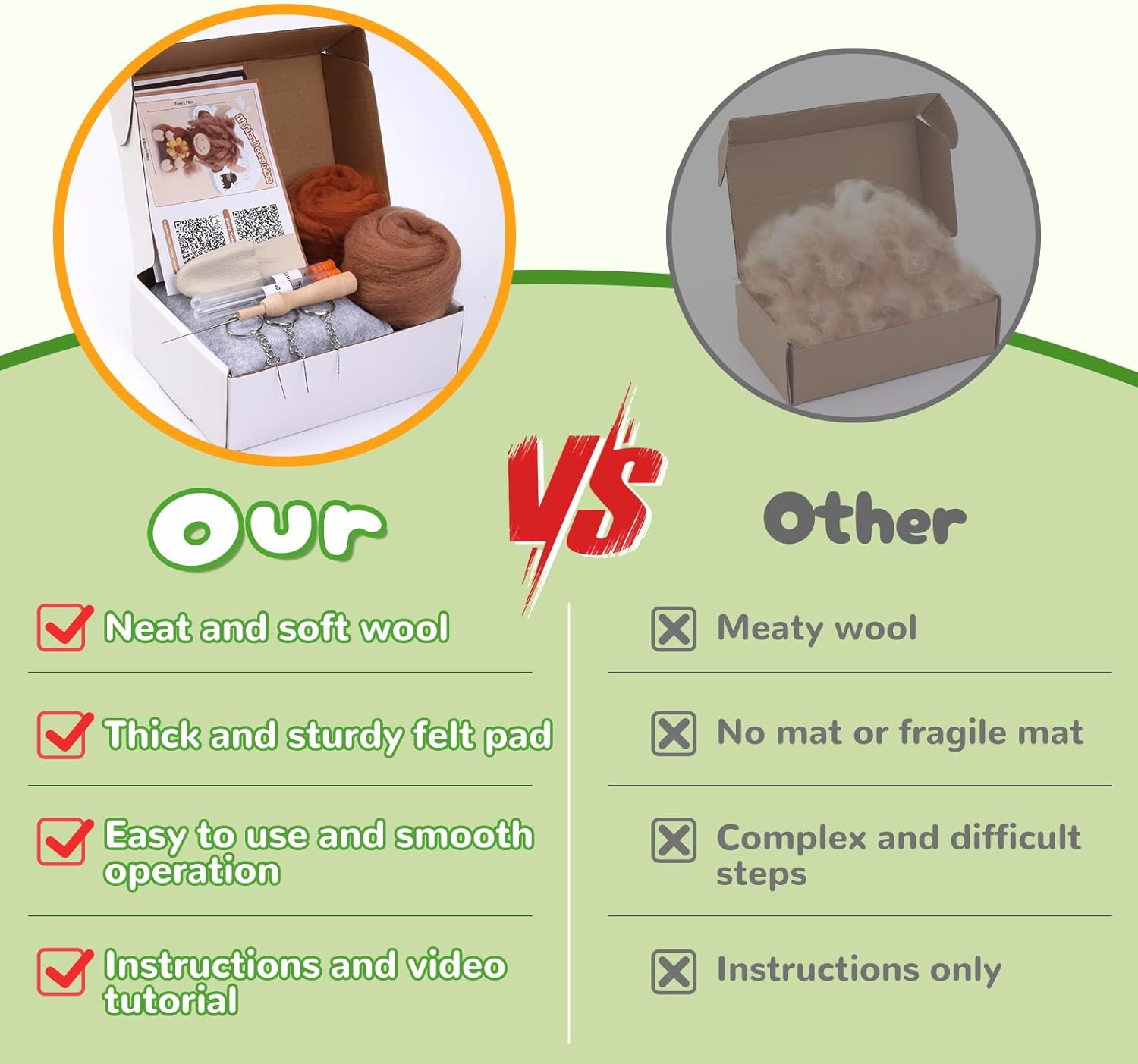 - Felting Kit For Beginners: In our needle felting beginner kit, we have provided very detailed instructions for wool felt, so you can easily make your favorite wool felt products. The wooden handle tool is ergonomically comfortable to hold, and easy to install and remove
