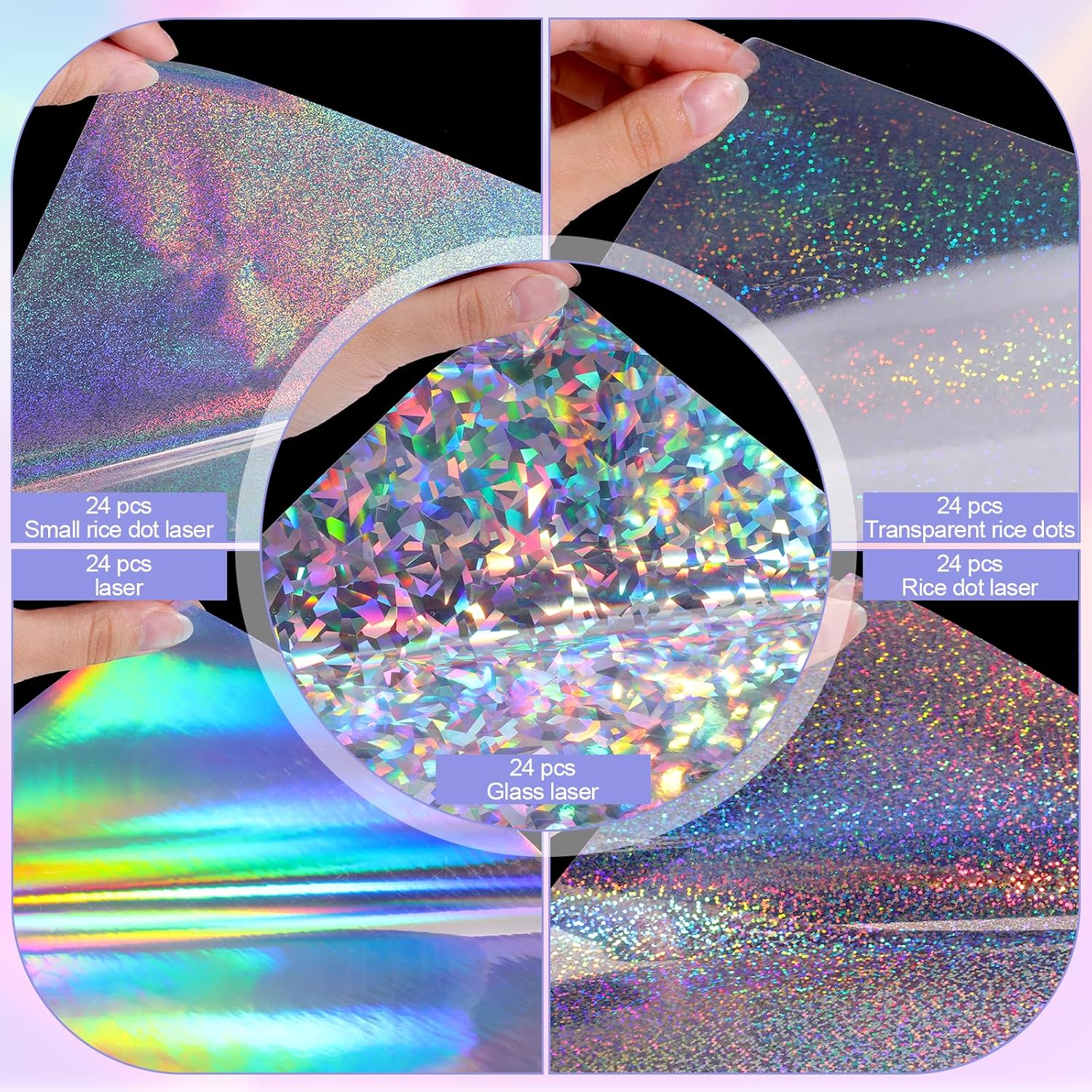 - 【Versatile Applications】 Our holographic sticker is perfect for a variety of creative projects, including home decor, scrapbooking, greeting cards, decals, notebooks, and more. Waterproof sticker papers' adhesive properties allow them to adhere smoothly to a variety of surfaces, including paper, plastic, glass, and metal. This versatility makes it an excellent choice for artists, hobbyists, and DIY enthusiasts.