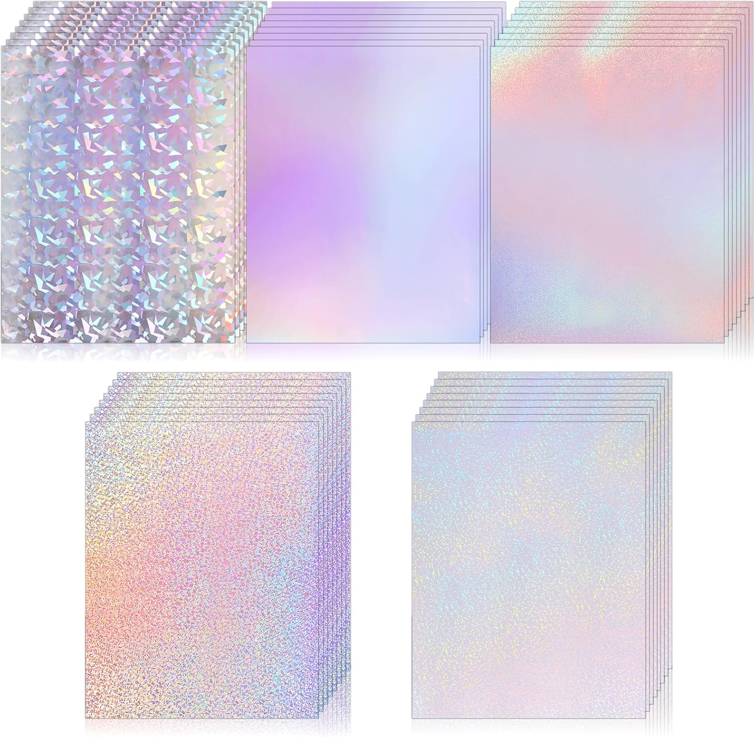 120 Sheets Holographic Sticker Paper, Vinyl Waterproof Laminating Sheets Self-Adhesive Overlay Laminate Sticker Transparent Rainbow Laminate Film 5 Styles Mixed (11 × 8.5 Inch)