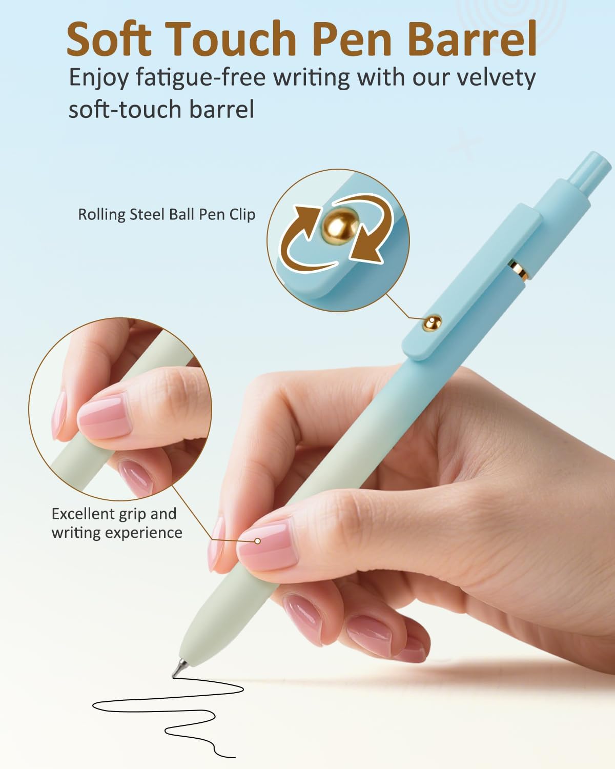 - Innovative Pen Clip: Our innovative pen clip features a rolling steel ball that glides on gently, holding firm without harming paper. It's also your new favorite fidget toy for focus and stress relief