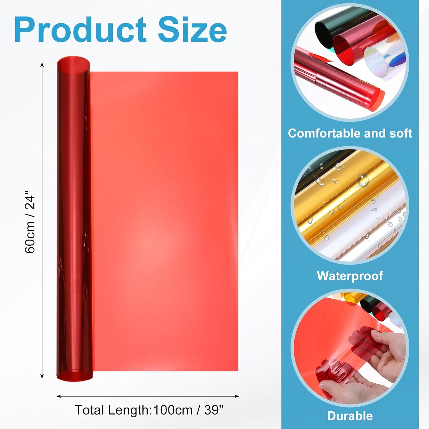 - Iridescent paper roll,Size:60cm x 100cm/24inch x 39inch,Color:Red,Material: PVC,In the package of: 1 x Iridescent craft film