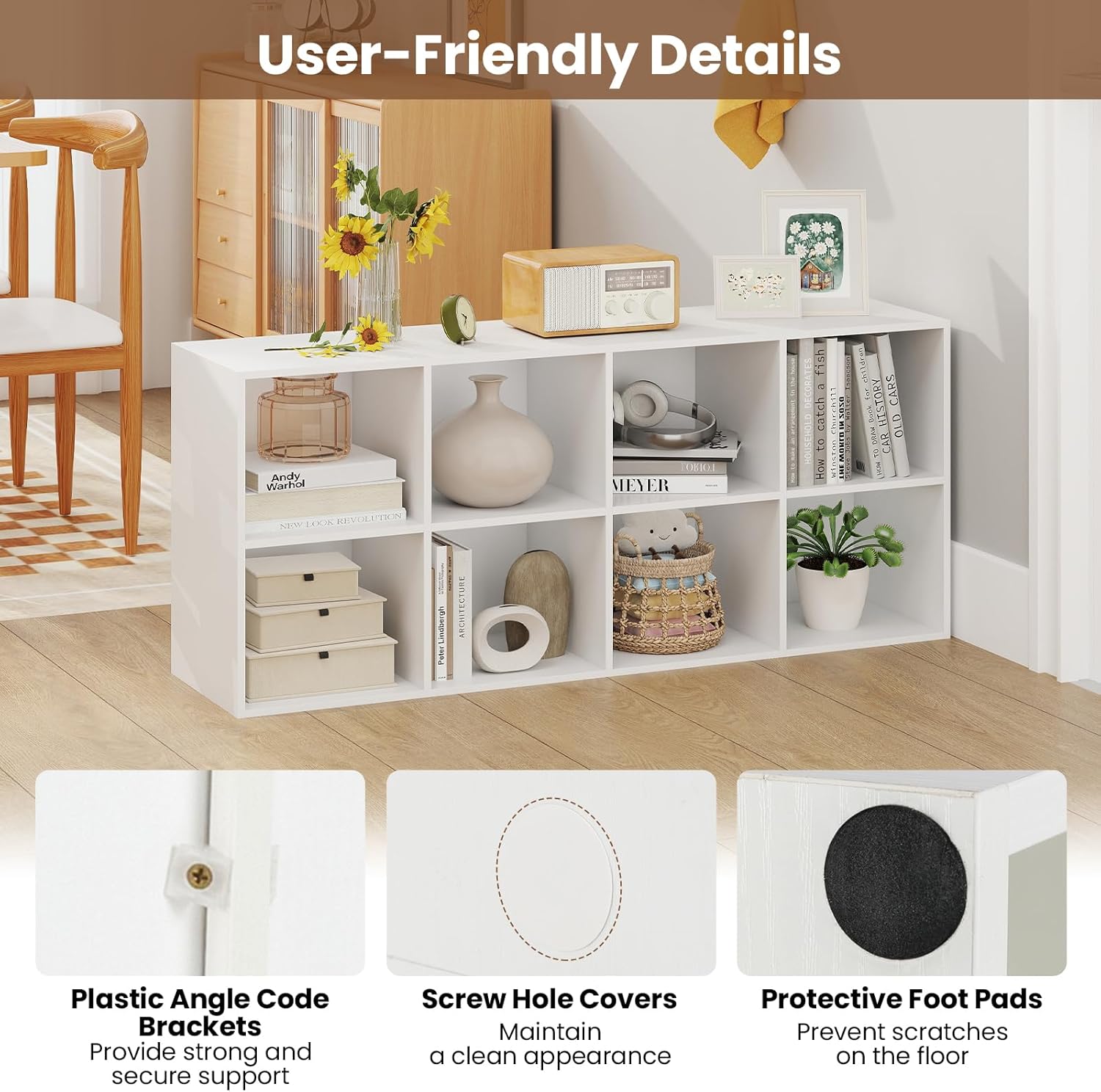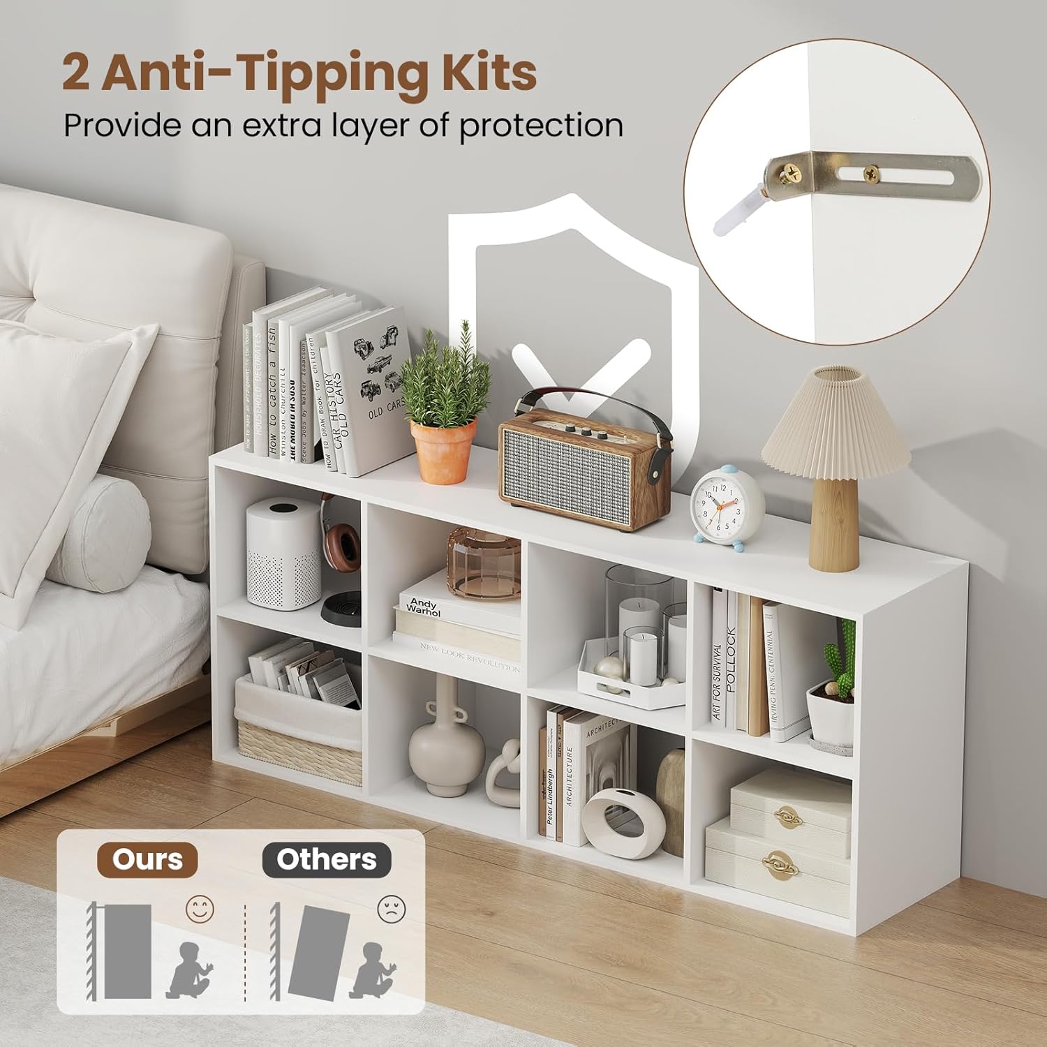 Giantex 8-Cube Bookcase, 3-Tier Cubby Bookshelf, Horizontal Vertical Display Rack with Anti-Tipping Kits, Modern Storage Organizer Shelf Unit for Bedroom, Living Room, Study (White, 8-Cube)