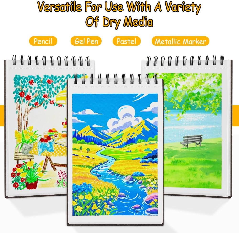- Premium Paper Quality: 8.3x5.8in mixed media sketchbook, 92lbs/150gsm acid-free papers, 60sheets in each blank notebook. Fine texture for drawing, sketching, it is suitable for various dry media such as pencils, charcoal pencils, gel pens, colored pencils, pastels, etc. It is an ideal choice for artists or beginners