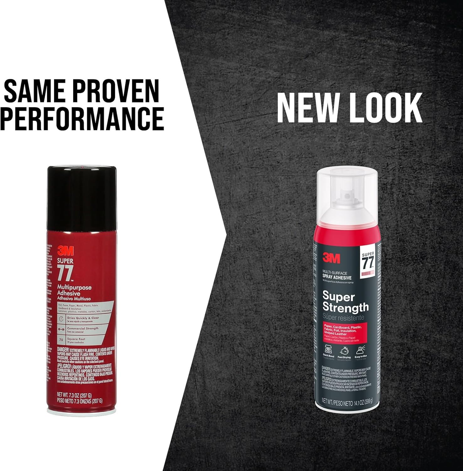 3M Super 77 Multi-Surface Spray Adhesive, 14.1 oz., Low VOC, Quick Bond, Fast Drying, Clear Finish for Foil, Foam, Paper, Metal, Plastic, Fabric, and Cardboard (77-NAT) (Pack of 2)