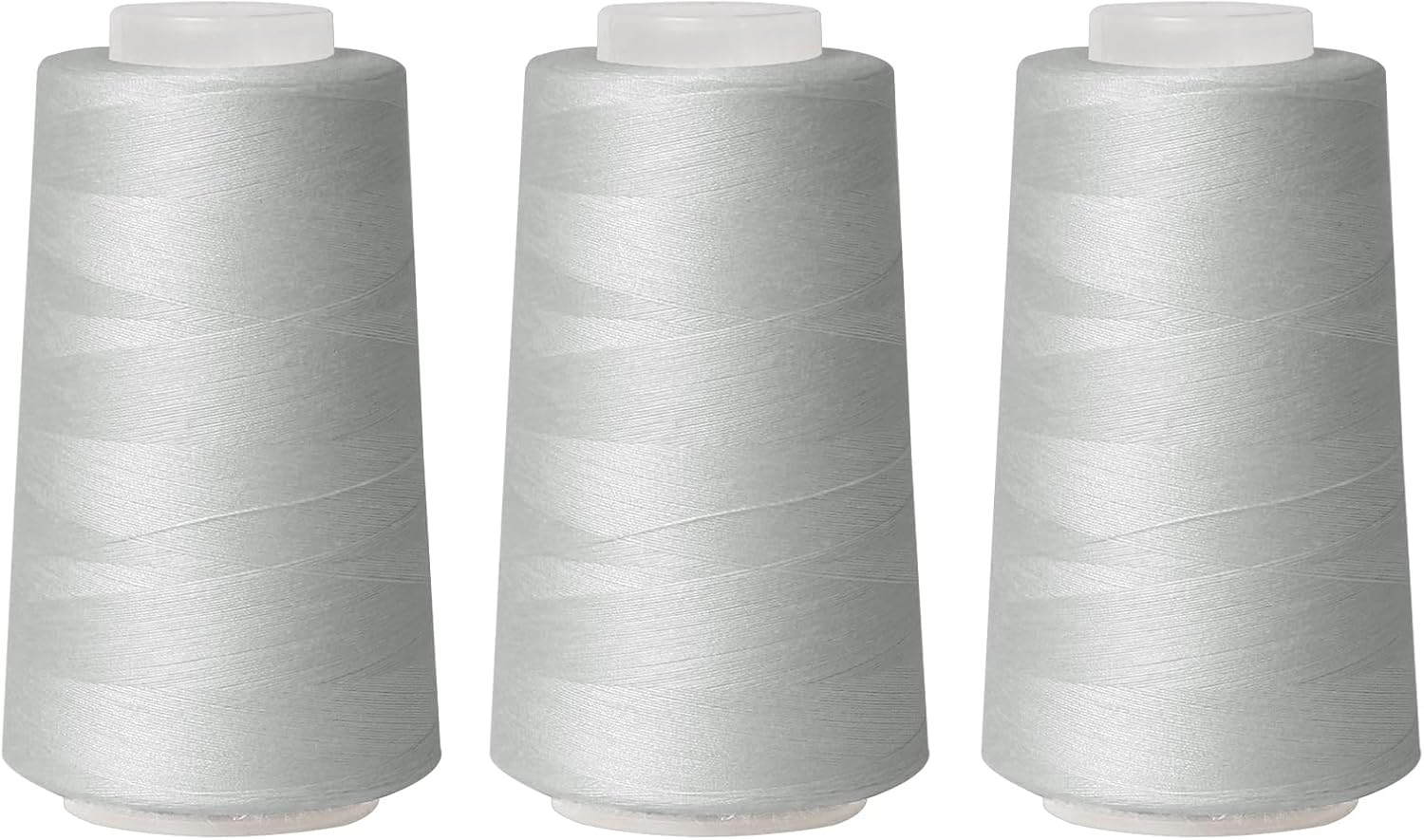 Sewing Thread Cone Set, 3 Pack Serger Thread, 3000 Yards Each, All Purpose Thread for Sewing, Quilting, Machines, Overlock, Merrow & Hand Embroidery (Grey*3)