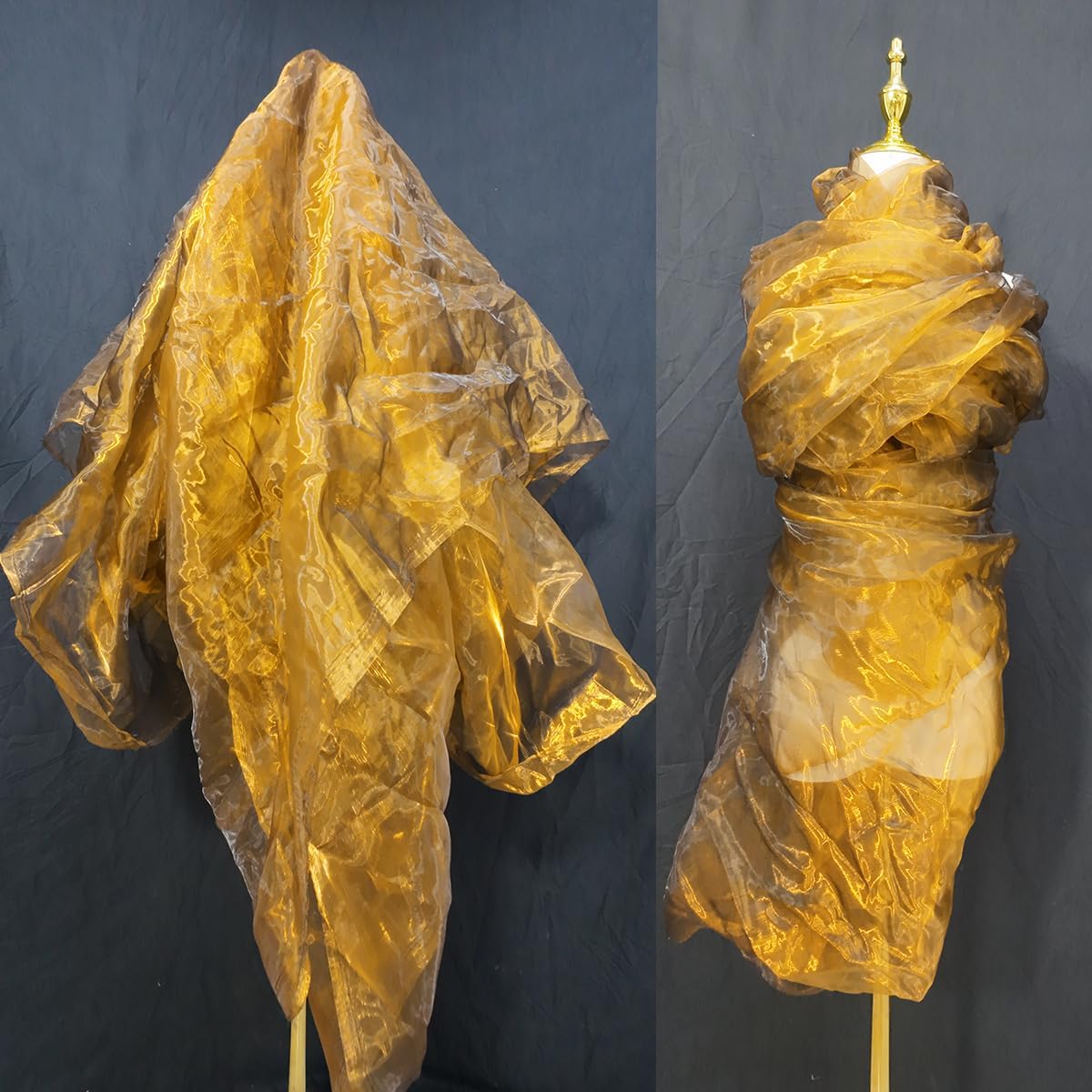 Two-Tone Iridescent Holographic Organza Fabric - 5.5 Yards | Lightweight Sheer Gauze Voile Tulle | for Dresses, Party Decor, DIY Crafts, Shiny Backdrops(Dull Gold)