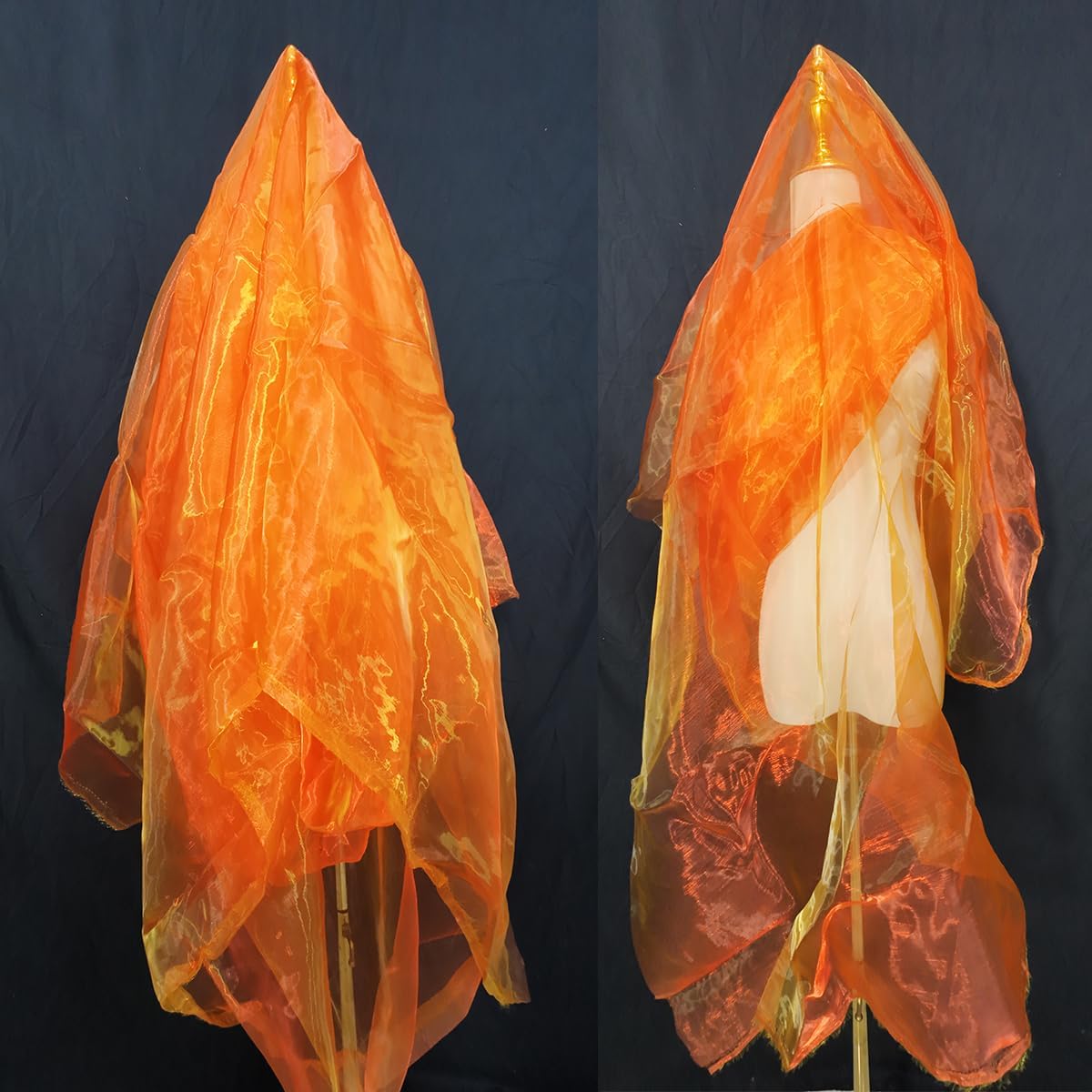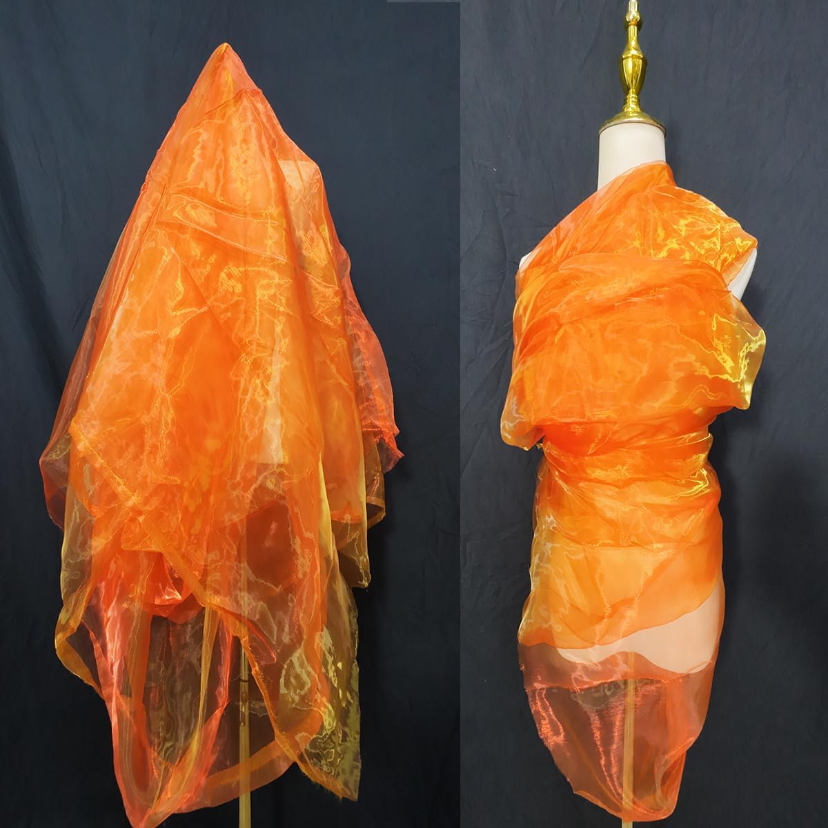 Two-Tone Iridescent Holographic Organza Fabric - 11 Yards | Lightweight Sheer Gauze Voile Tulle | for Dresses, Party Decor, DIY Crafts, Shiny Backdrops(Red and Yellow)