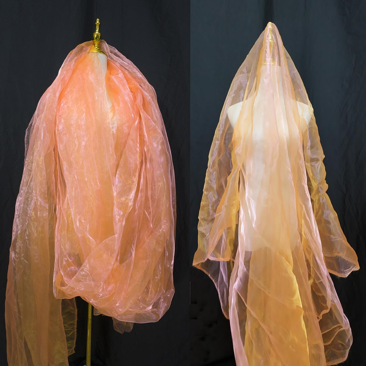 - Iridescent Visual & Texture Advantages: Unique Iridescent Orange Color Creates Vivid Luster Under Light Refraction. The Fabric Is Lightweight, Sheer, And Boasts Excellent Drape—Effortlessly Achieving a Flowing Look While Maintaining a Neat, Structured Shape For Your Projects.