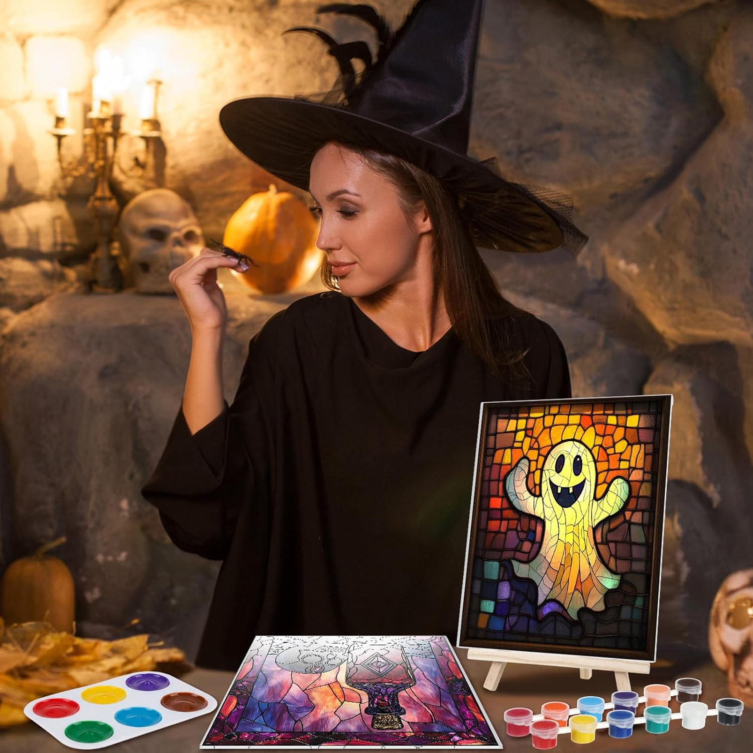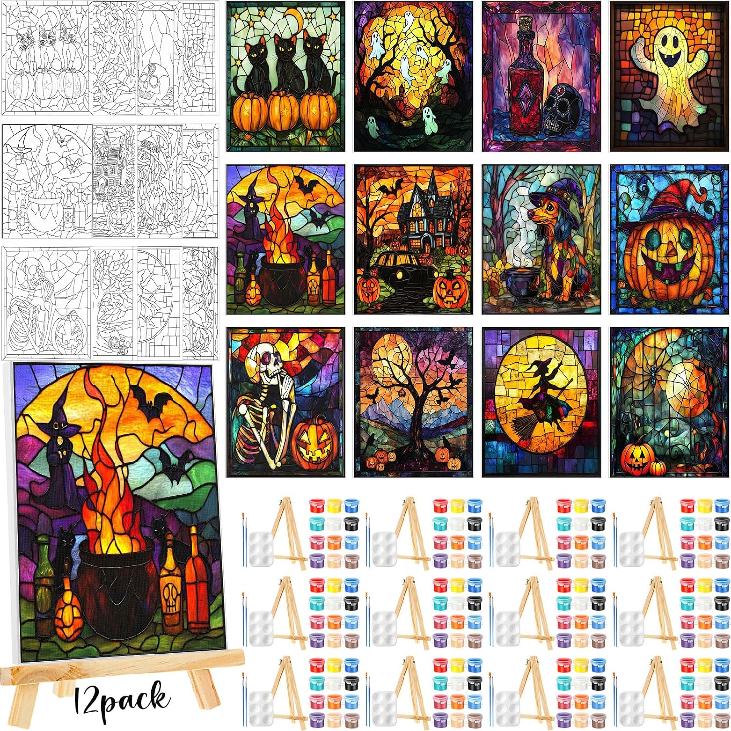 - Different Styles: our drawn canvas offer a variety of 12 different Halloween themed glass style to choose from; This design can make sure there's a style that fits your taste and preference; Whether you're a beginner, a paint and sip going enthusiast, or an expert painter, our painting canvases with pictures to paint will help you craft stunning artworks effortlessly; Get ready to dive into the world of colors and creativity with our pre drawn canvas paint kit