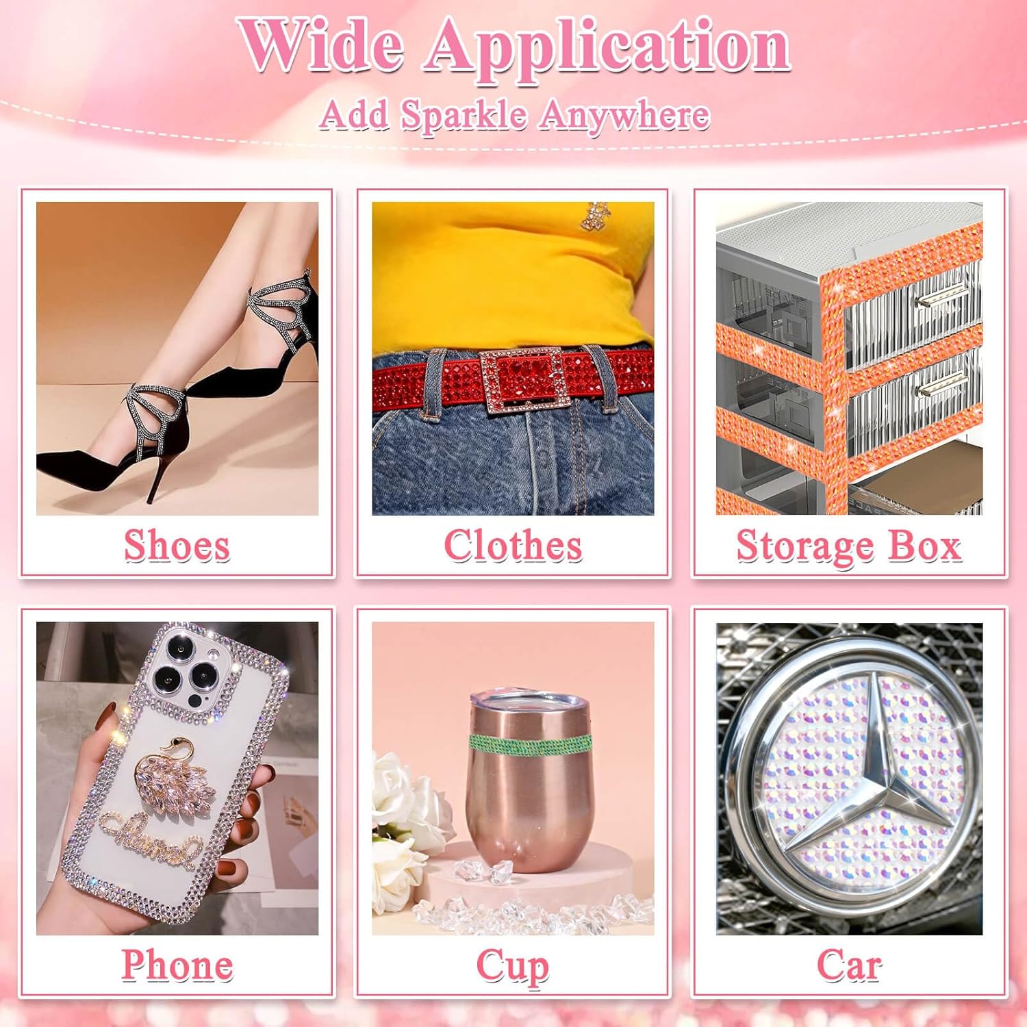 - 【Wide Applications】 These rhinestones strips are perfect for decorating shoes, clothes, cars, vases, wallets, hair clips, photo frames, and more. The glitter tape for crafts is Ideal for weddings, birthdays, graduations, anniversaries, and other special occasions, the bling strips instantly add a sparkling, eye-catching touch to any item