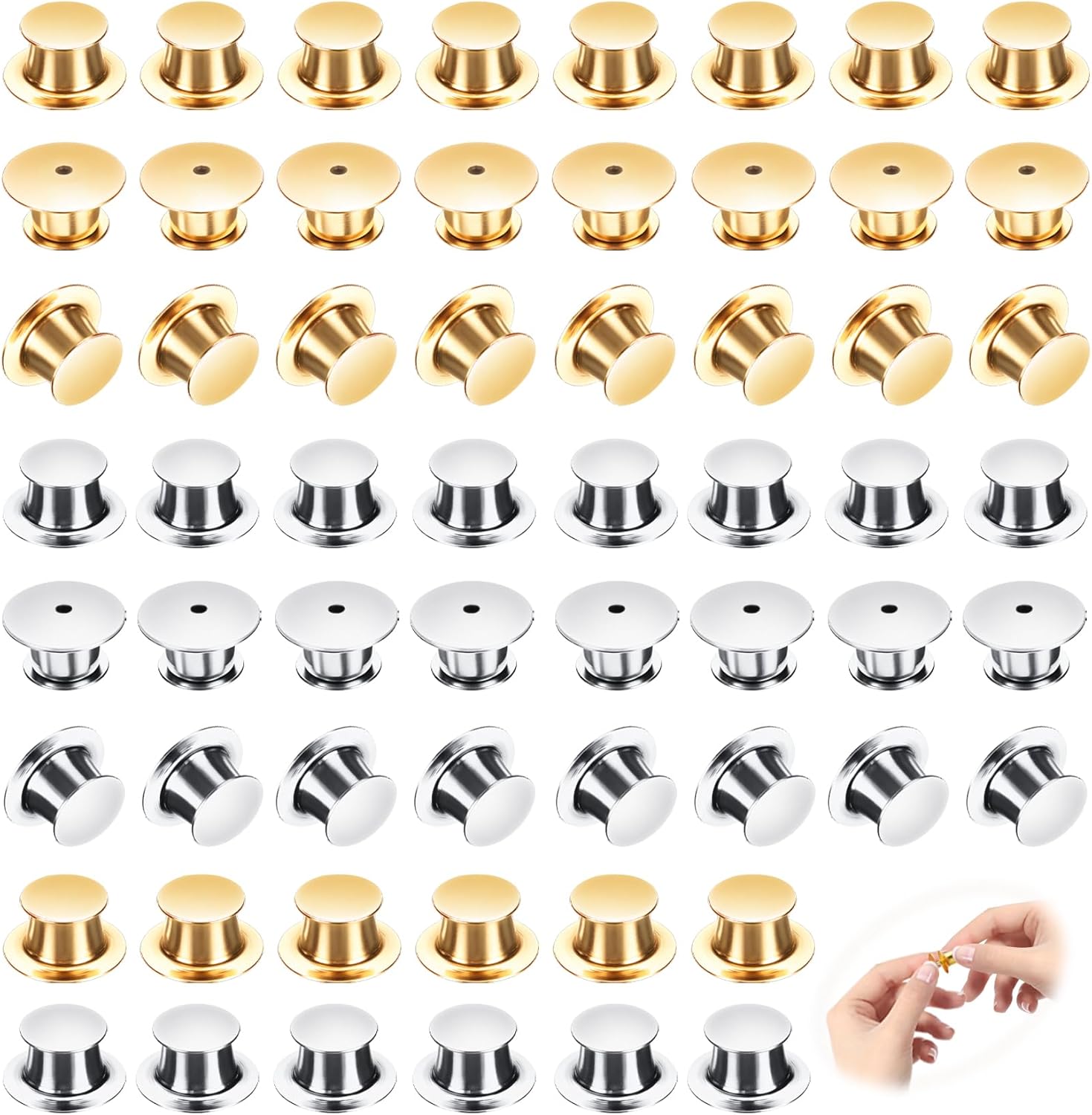 Locking Pin Backs - Enamel Brooch Locks Buckle 50pcs Badge Lapel Button Back Lock for DIY Crafts(Gold and Silver)