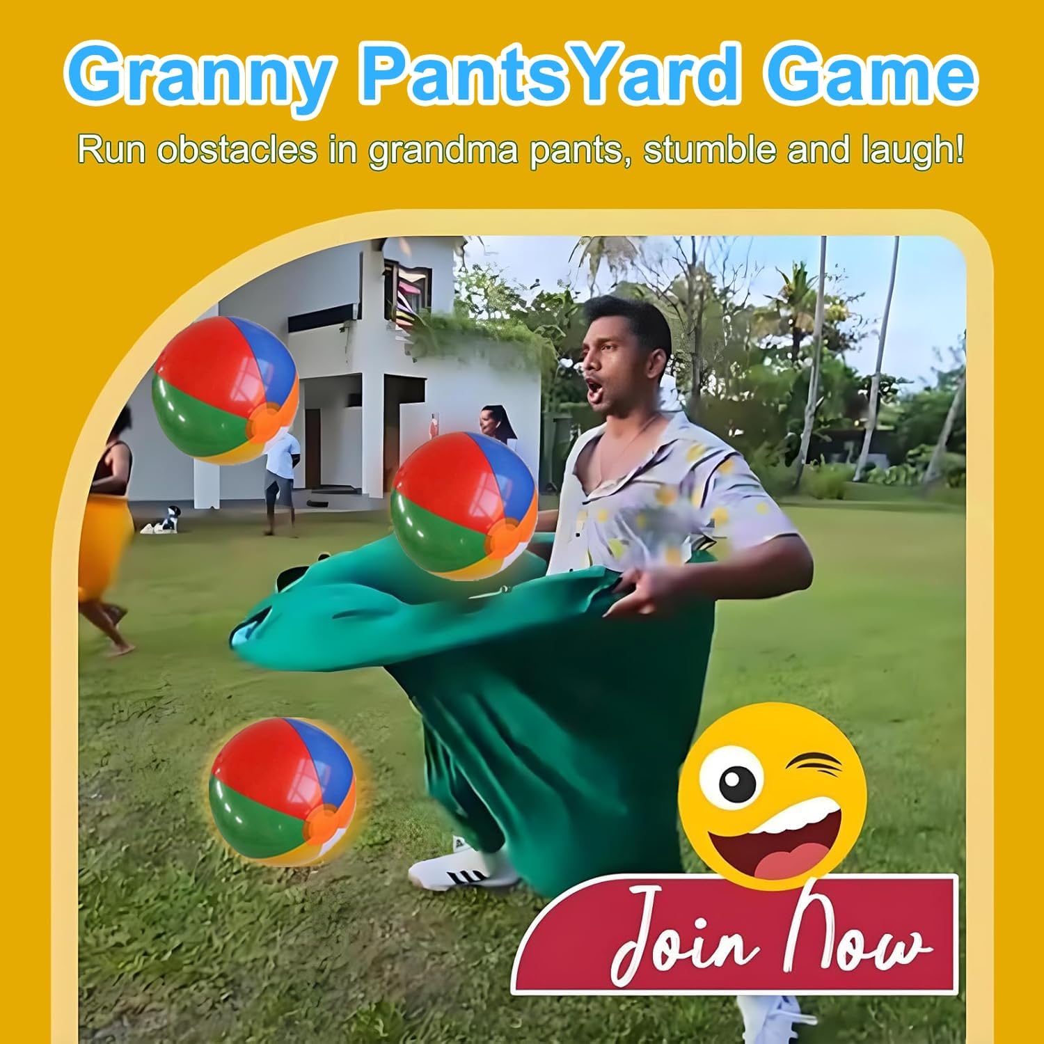 - Usage: Players walk into the huge grandma pants,and throw the ball into the opponent's pants,Super sized throwing game relay race challenges crazy costume competition, where everyone can enjoy the humor and interactive experience of Grandma's Pants Courtyard game set