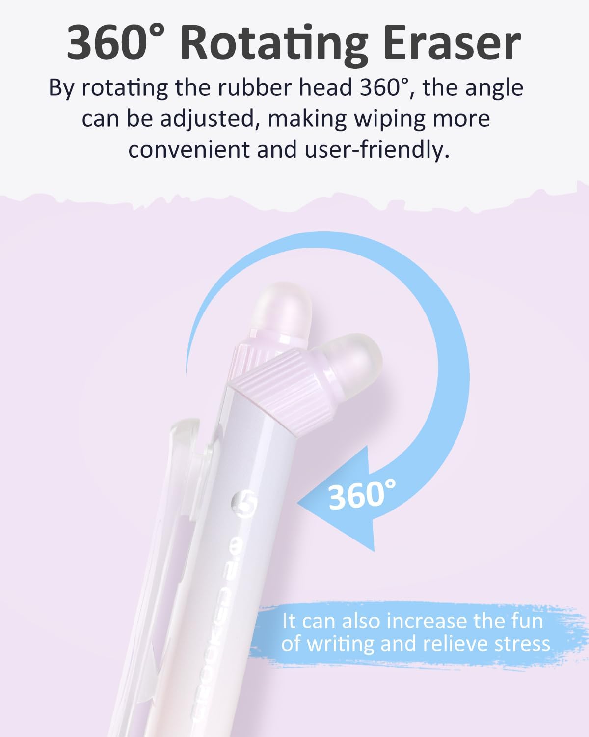 - Precision Erasing at Any Angle: The eraser at the top of our erasable pen rotates a full 360°! This innovative design lets you make flawless corrections with ease. A simple twist reveals a fresh erasing surface, letting you make flawless corrections with ease from any angle. No smudges, just perfection