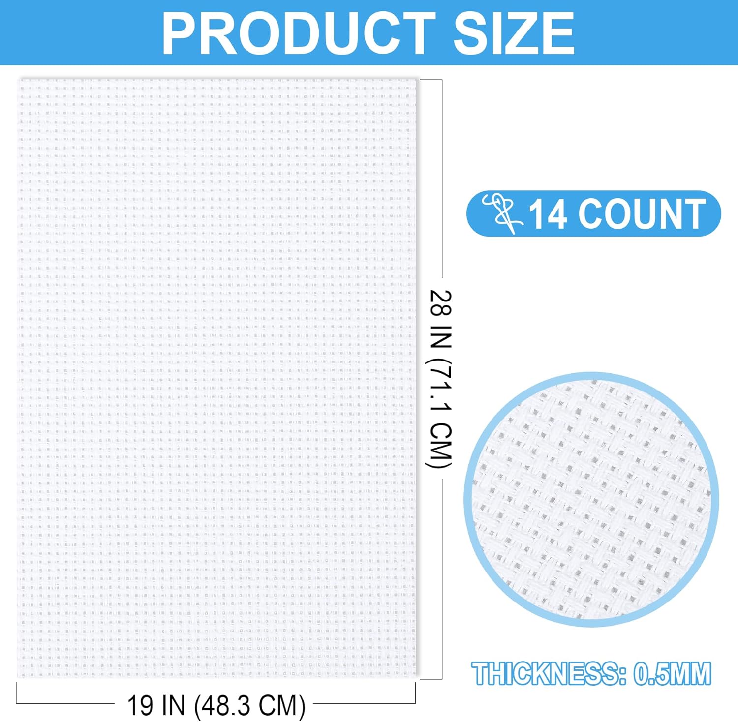 - 【Large Size】Cross stitch cloth measures 28 x 19 inches, large enough for your daily use. You can cut the size freely by your need. 14 count aida cloth has clear grid layout and a strong 3D touch feeling. You can easily create cross stitch work you want, perfect for fitting your embroidery craft