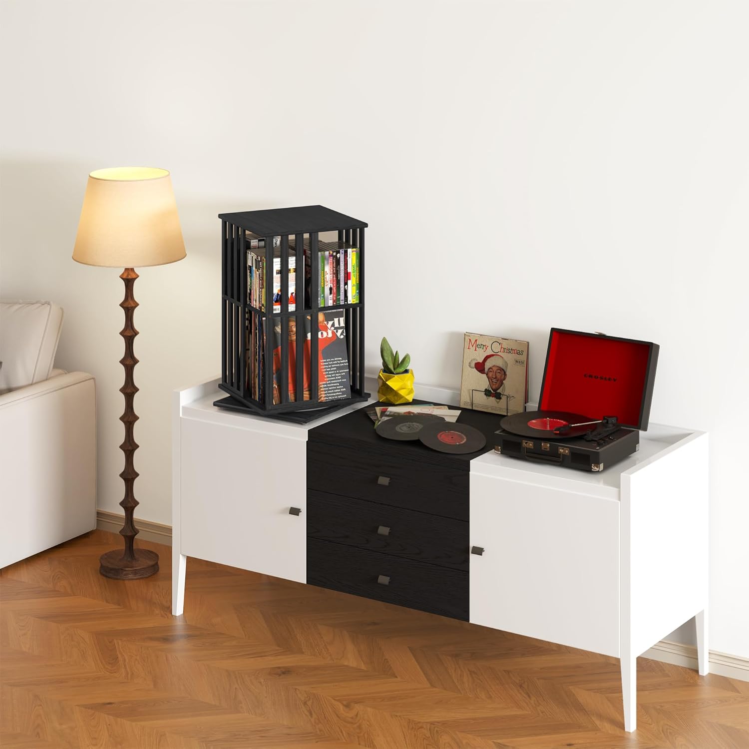 - Versatile Storage for All Book Sizes: Designed for flexibility, this 360 bookshelf organizer fits everything from children’s picture books and novels to tall art books and binders. Anti-fall rods keep items secure, while the rotating design ensures full access from any angle. Great as a kids bookshelf, media storage tower, or décor display stand.