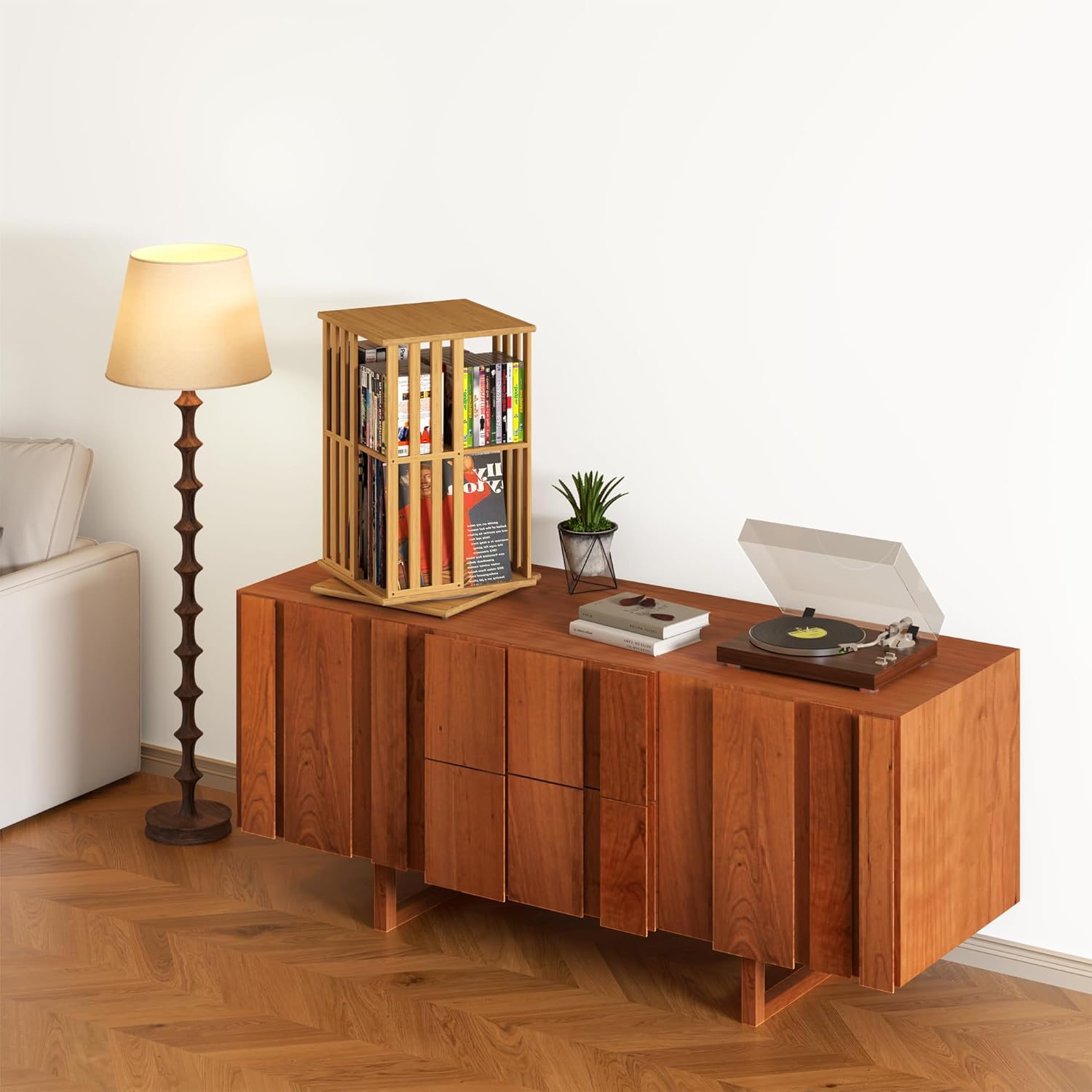 - 360° Rotating Bookshelf with Stable Base: Enjoy effortless organization with this rotating bookshelf tower—smooth 360° spin lets you find books, movies, or décor in seconds without bending or rearranging. The sturdy bamboo base and reinforced structure keep your spinning bookcase stable and wobble-free, even when fully loaded. Ideal for living rooms, bedrooms, home offices, or small apartments.