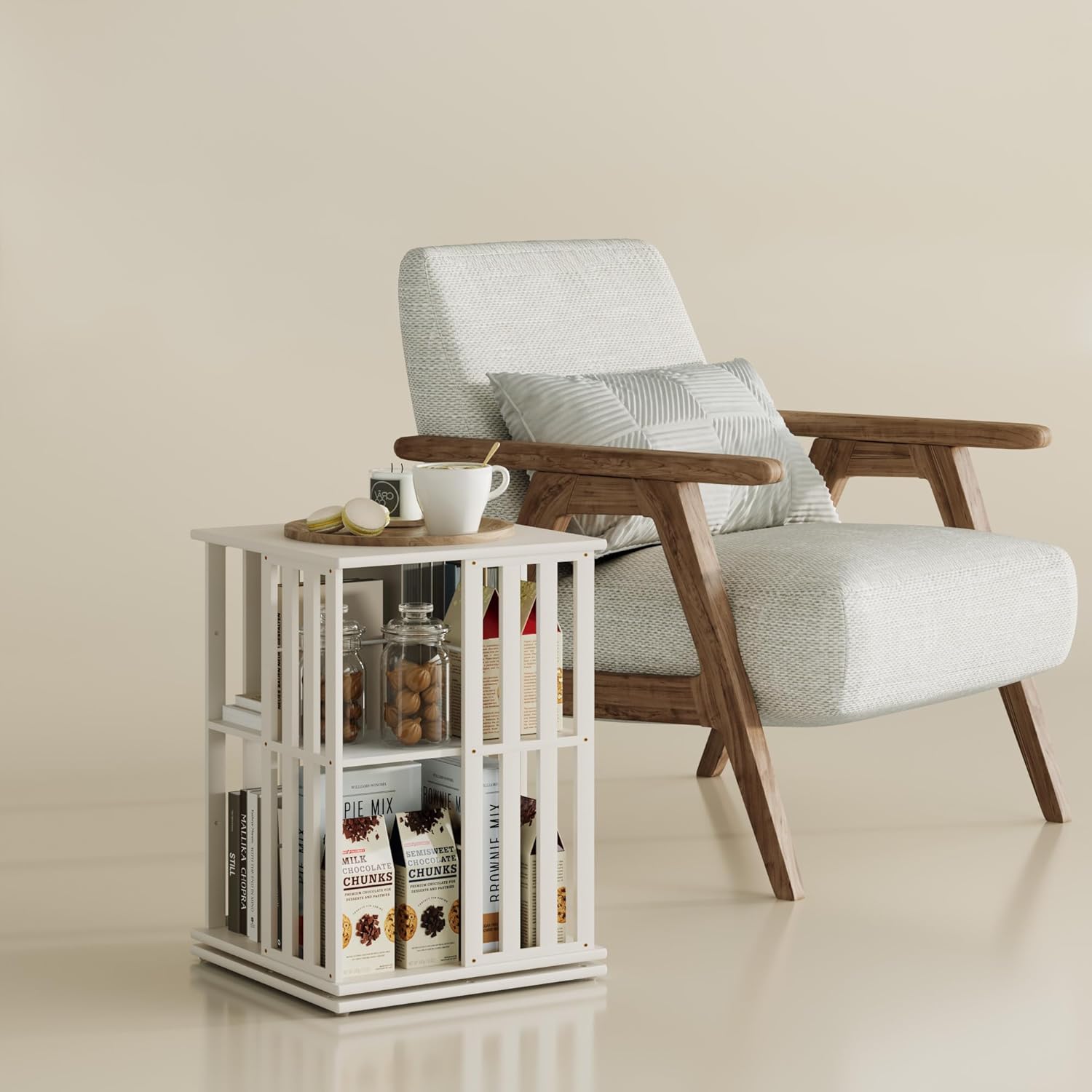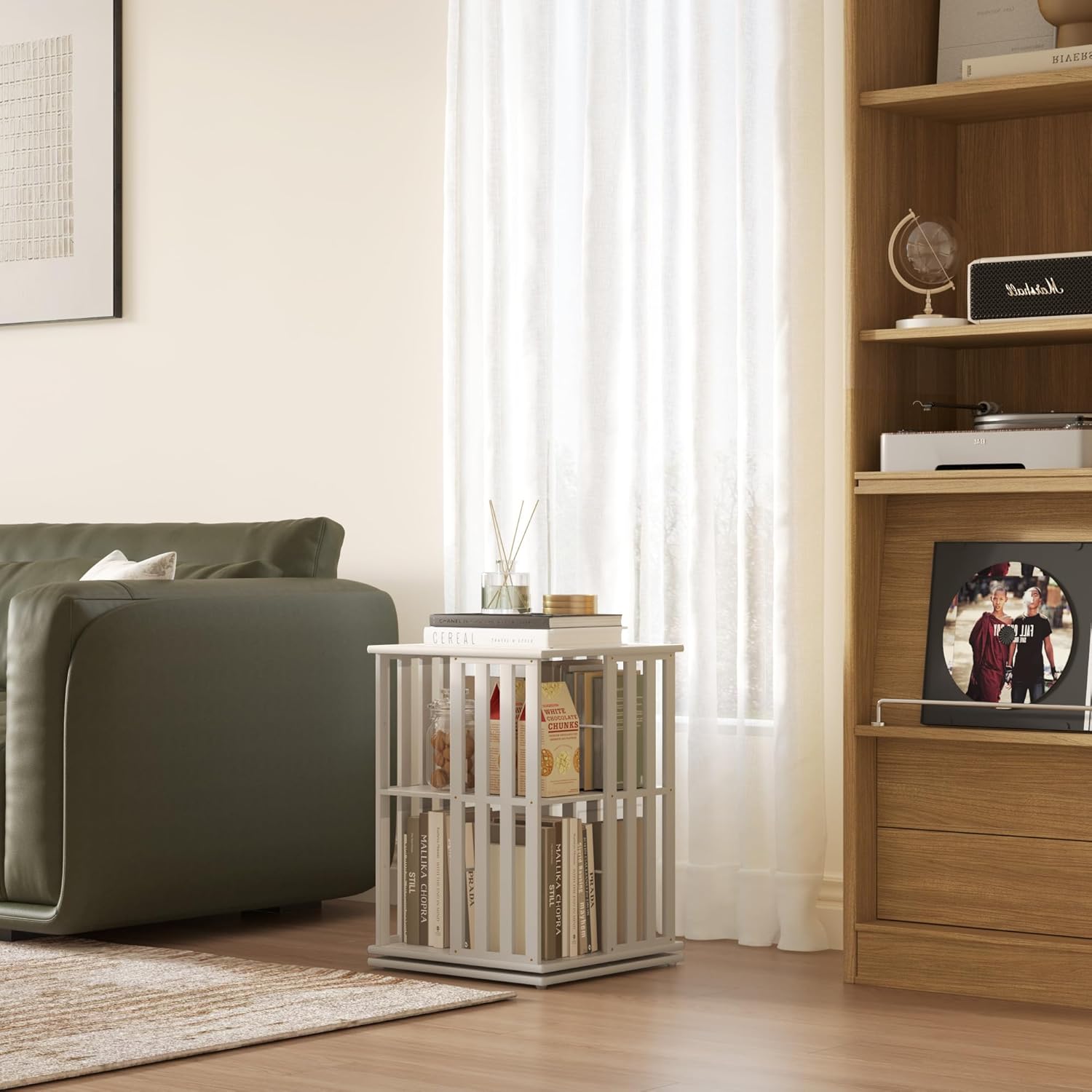 YOWOS Rotating Bookshelf Tower, 360 Display Spinning Bookcase, Bamboo Bookshelf Floor Standing Storage Rack, Wood Narrow Book Shelf Organizer for Kids&Adults (White, 2 Tier)