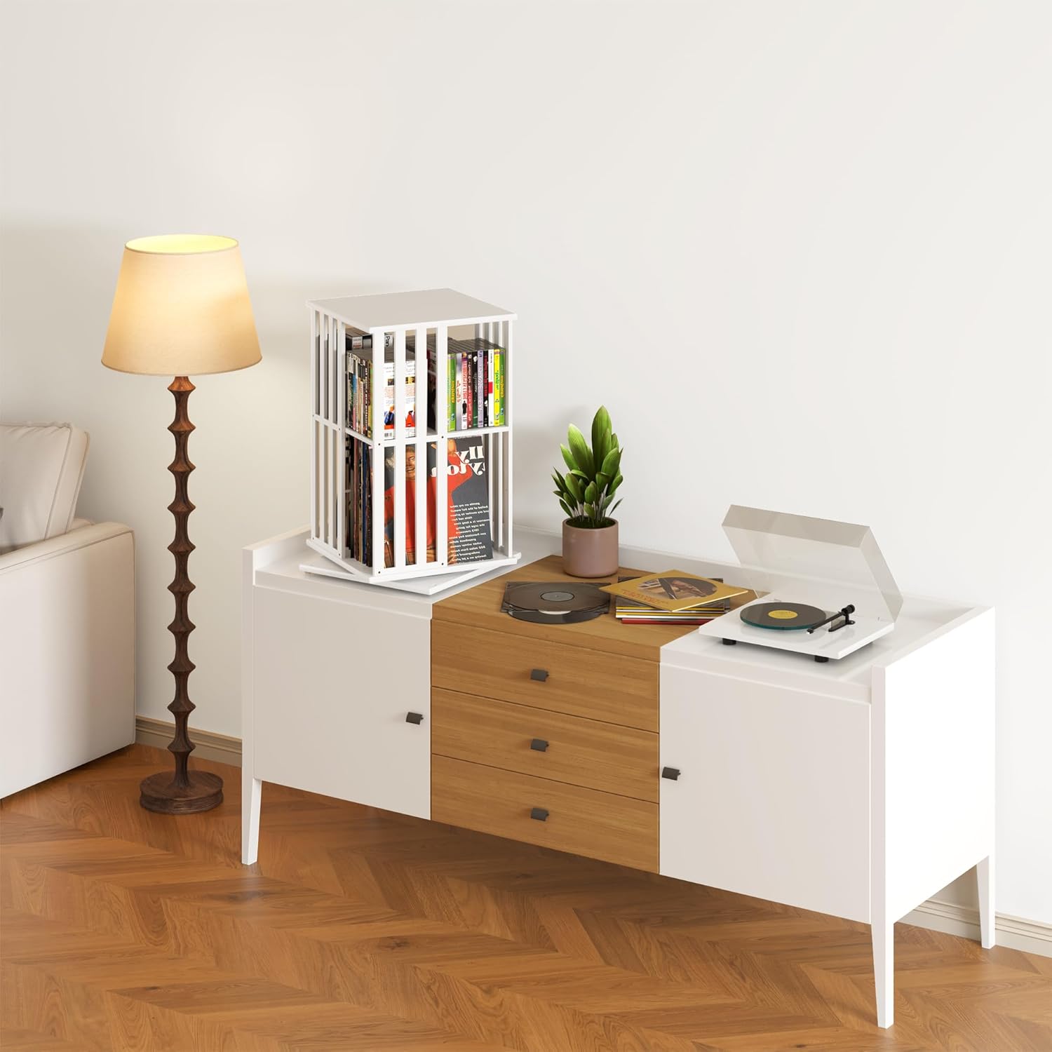 - Versatile Storage for All Book Sizes: Designed for flexibility, this 360 bookshelf organizer fits everything from children’s picture books and novels to tall art books and binders. Anti-fall rods keep items secure, while the rotating design ensures full access from any angle. Great as a kids bookshelf, media storage tower, or décor display stand.