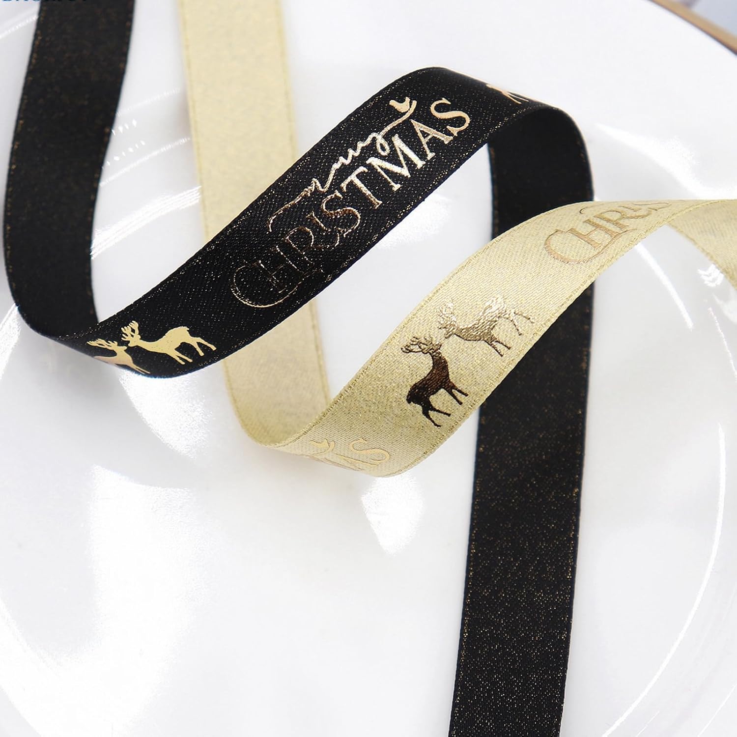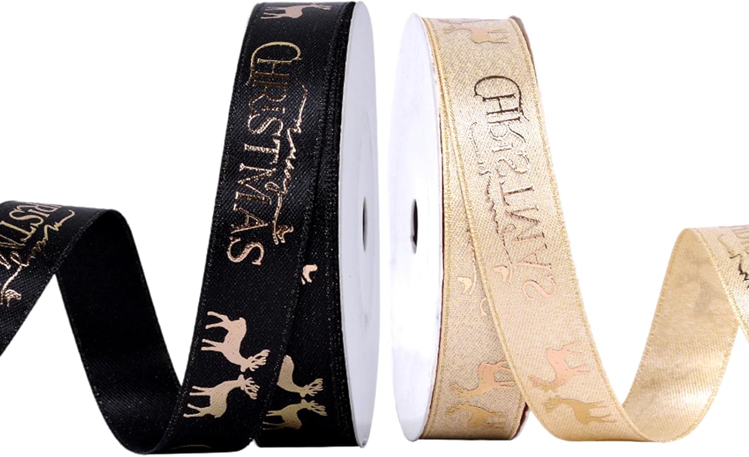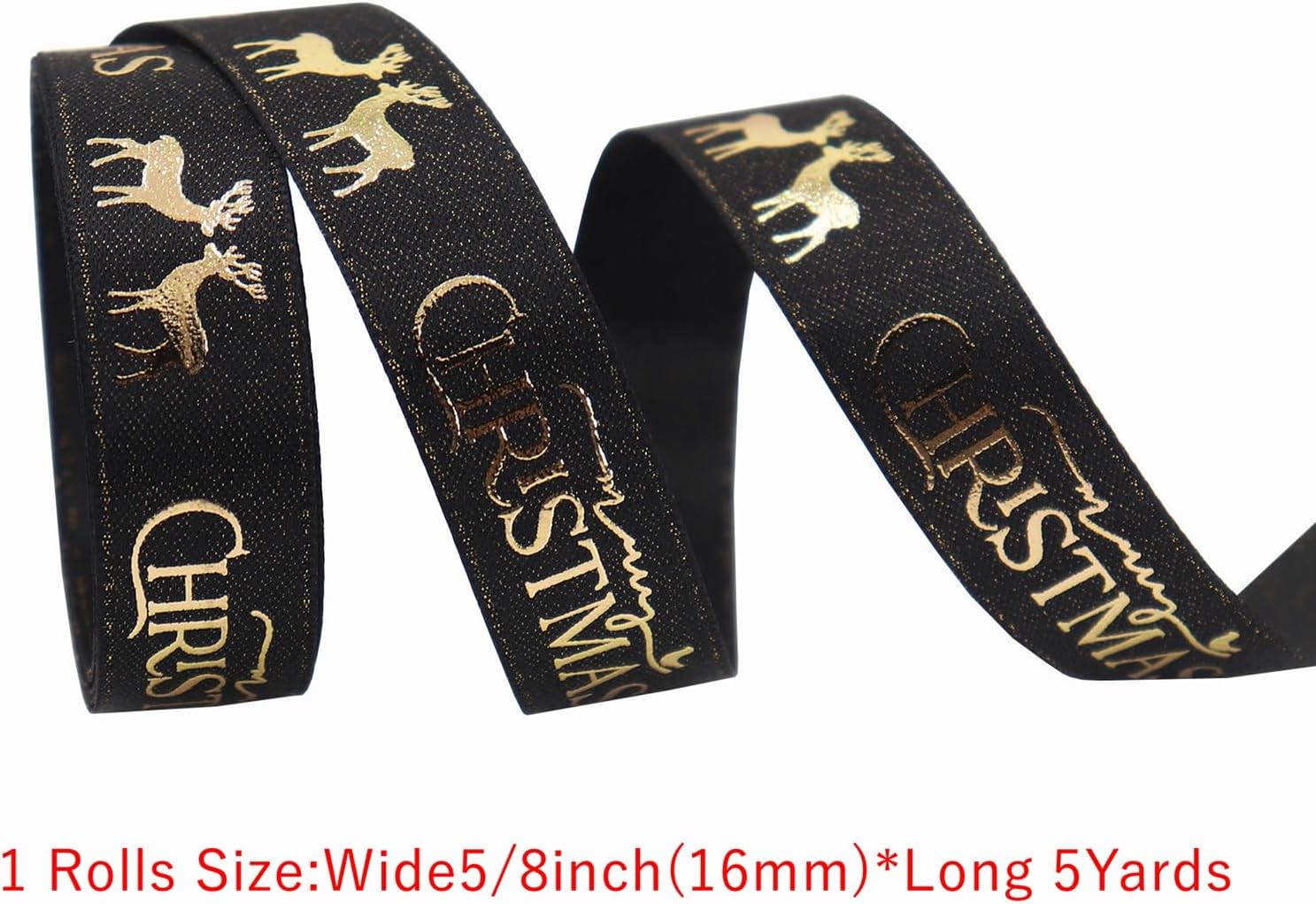 Christmas Gift Wrapping Ribbon, Red, Green, 2 Rolls Printed Grosgrain Ribbons for Crafts, Floral Bouquets, Sewing, Party and Festive Holiday Decor (2 Rolls(Black/Gold), 1 Rolls=5/8in * 5Yards)