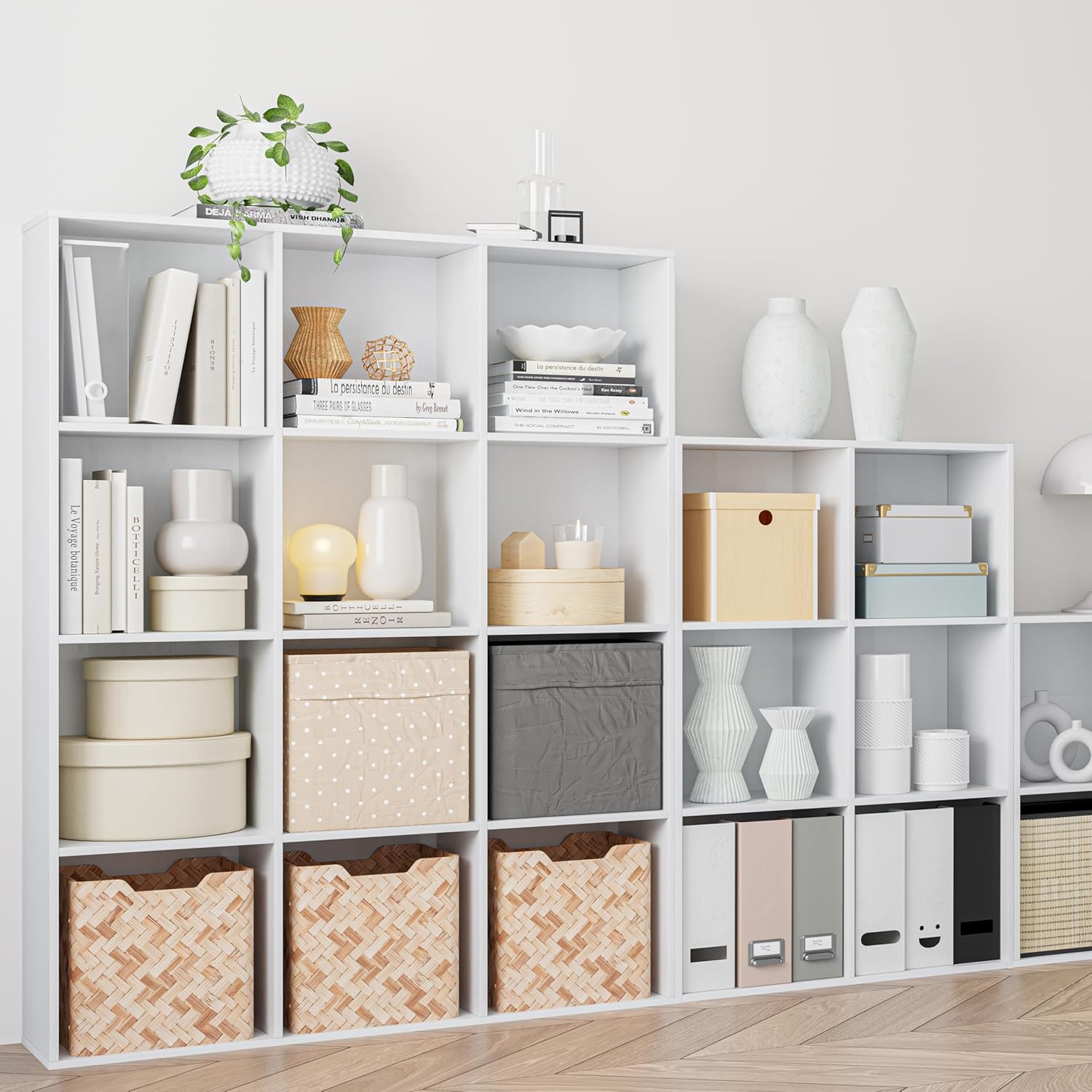 Wooden Cube Storage Organizer with Closed Back Panel, 11in Cube Shelf Opening, Bookshelf, Display Shelf,Closet Cabinet for Home and Office (Embossed White, 12-Cube 35.98L*9.45W*47.72H)