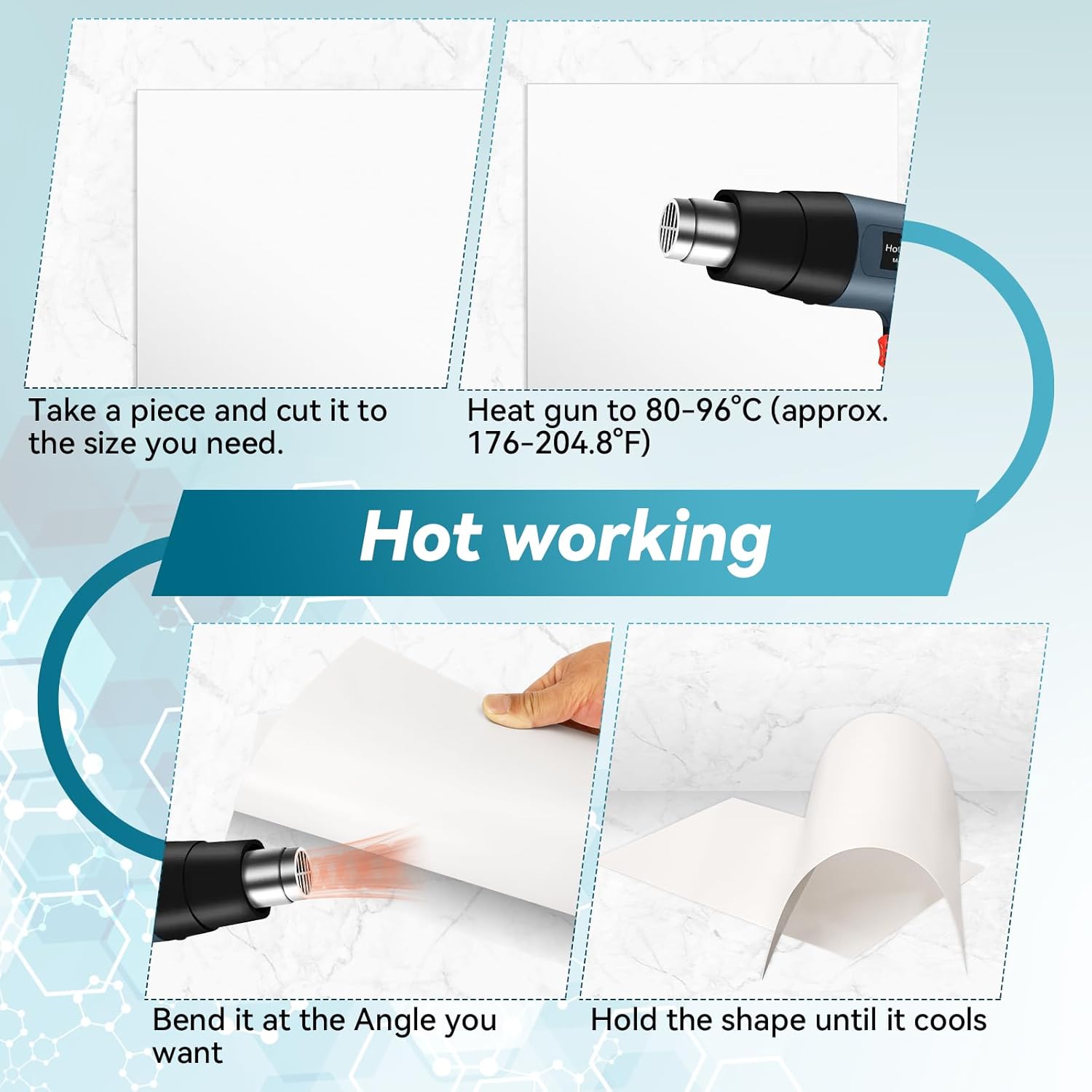 - DIY Creative Masterpiece Enabler:This set includes 5 high - quality PP plastic sheets, each with a precise size of 30×30cm (approximately 12×12 inches) and a thickness of 2mm (about 0.08 inches). Lightweight and easy to process, simply heat them with a hot air gun at Use a heat gun at 80-120°C (176-248°F) for smooth, precise shaping. Avoids wrinkling, deformation, and scalding; lowers operation threshold for all users. helping you achieve professional - grade results effortlessly.