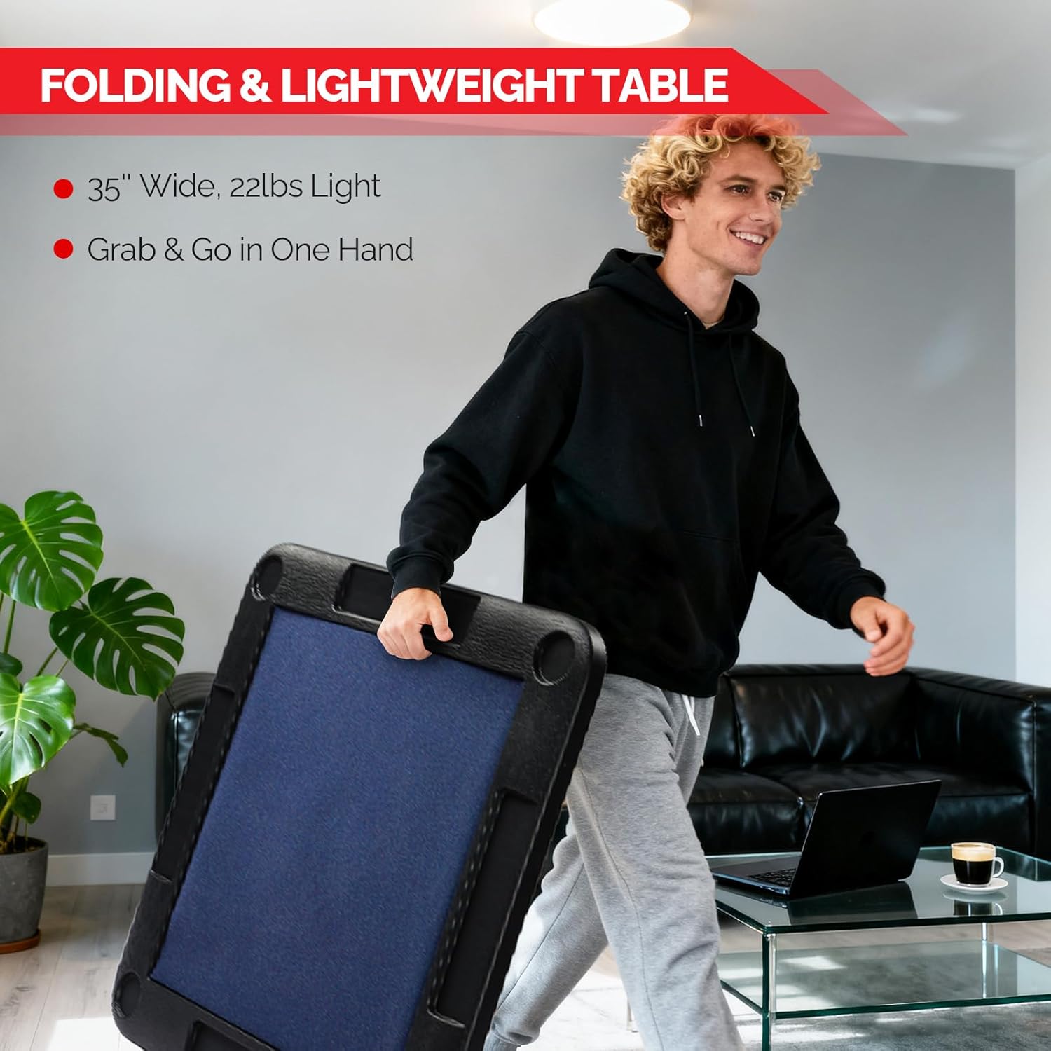 PEXMOR 35" Foldable Mahjong Table, 4 Player Card Game Table w/Cup Holders & Chip Grooves, Portable Folding Poker Domino Board Game Table for Blackjack, Texas Hold'em, Jigsaw Puzzles Game (Blue, 35")