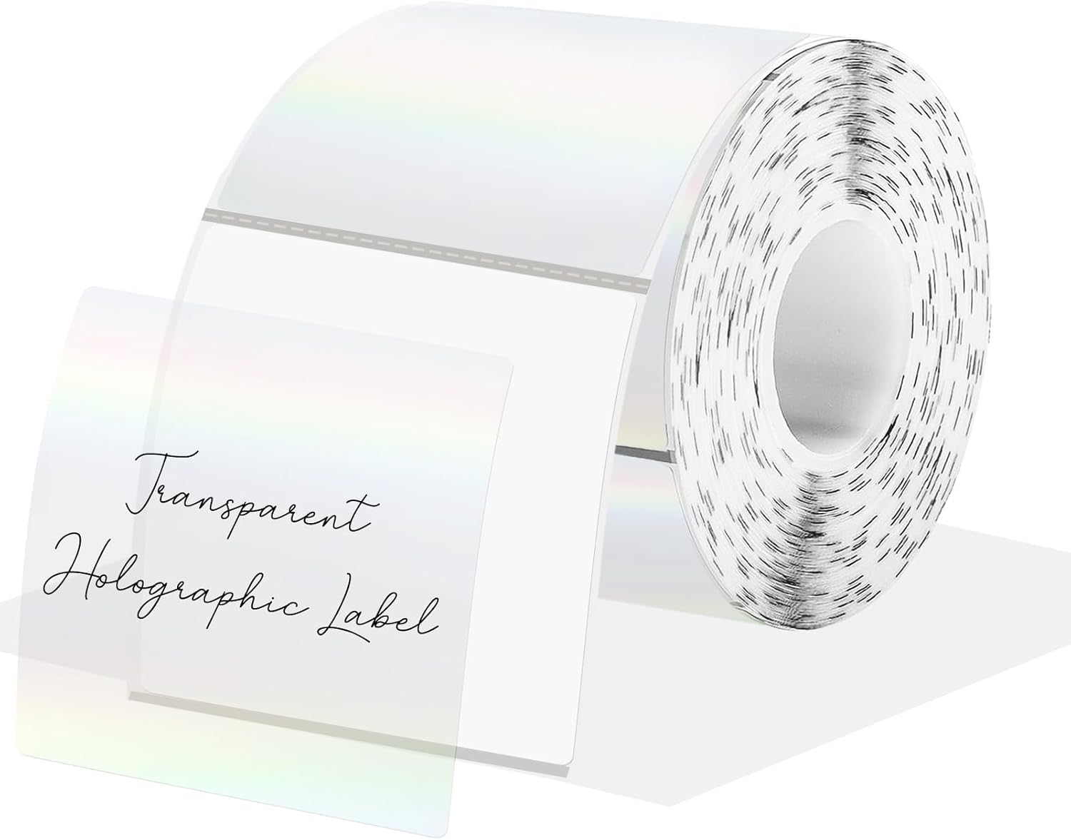 - 2" Square Transparent Holographic Thermal Sticker Labels, 300 Labels/Roll. Clear labels for thermal printer, No ink toner or ribbons are needed