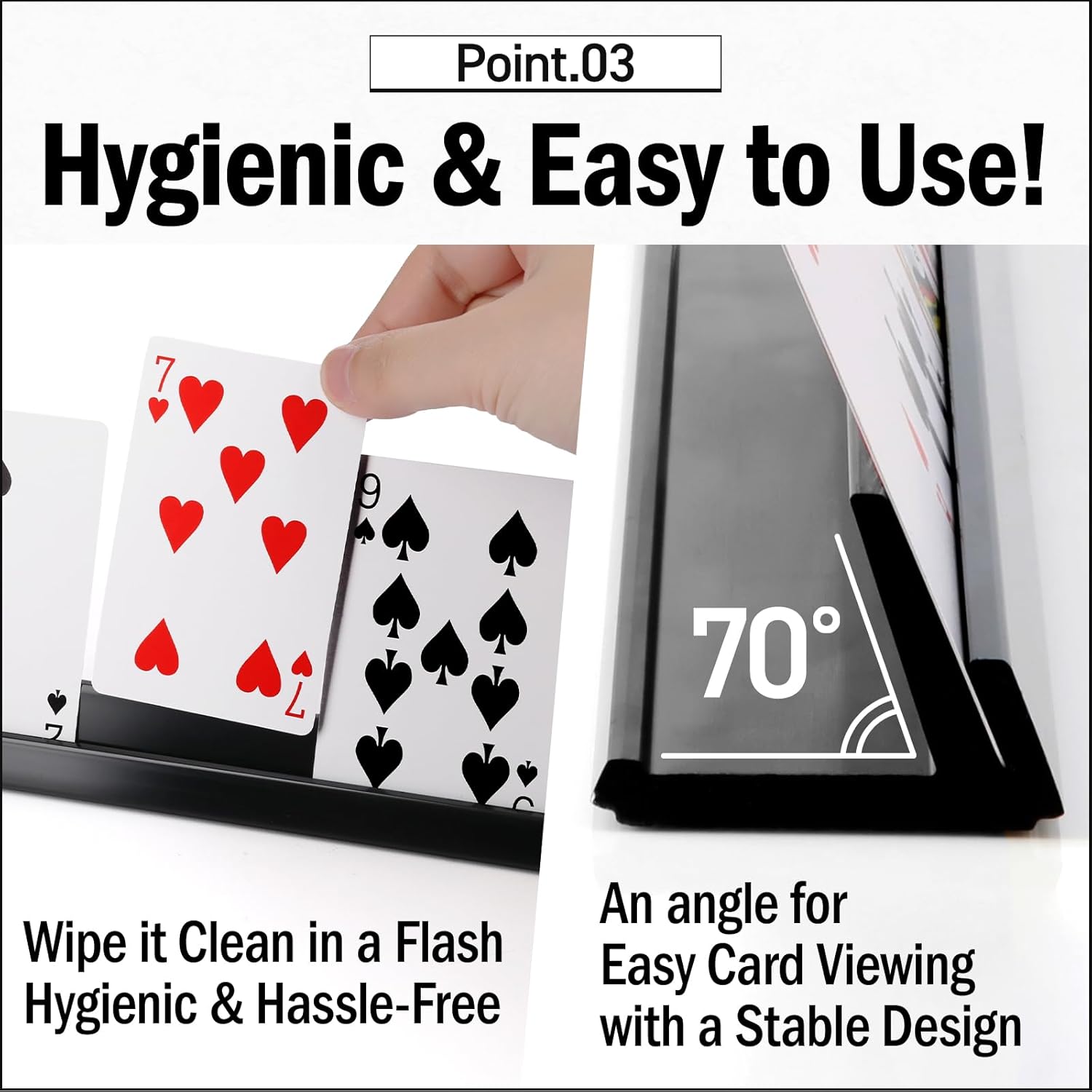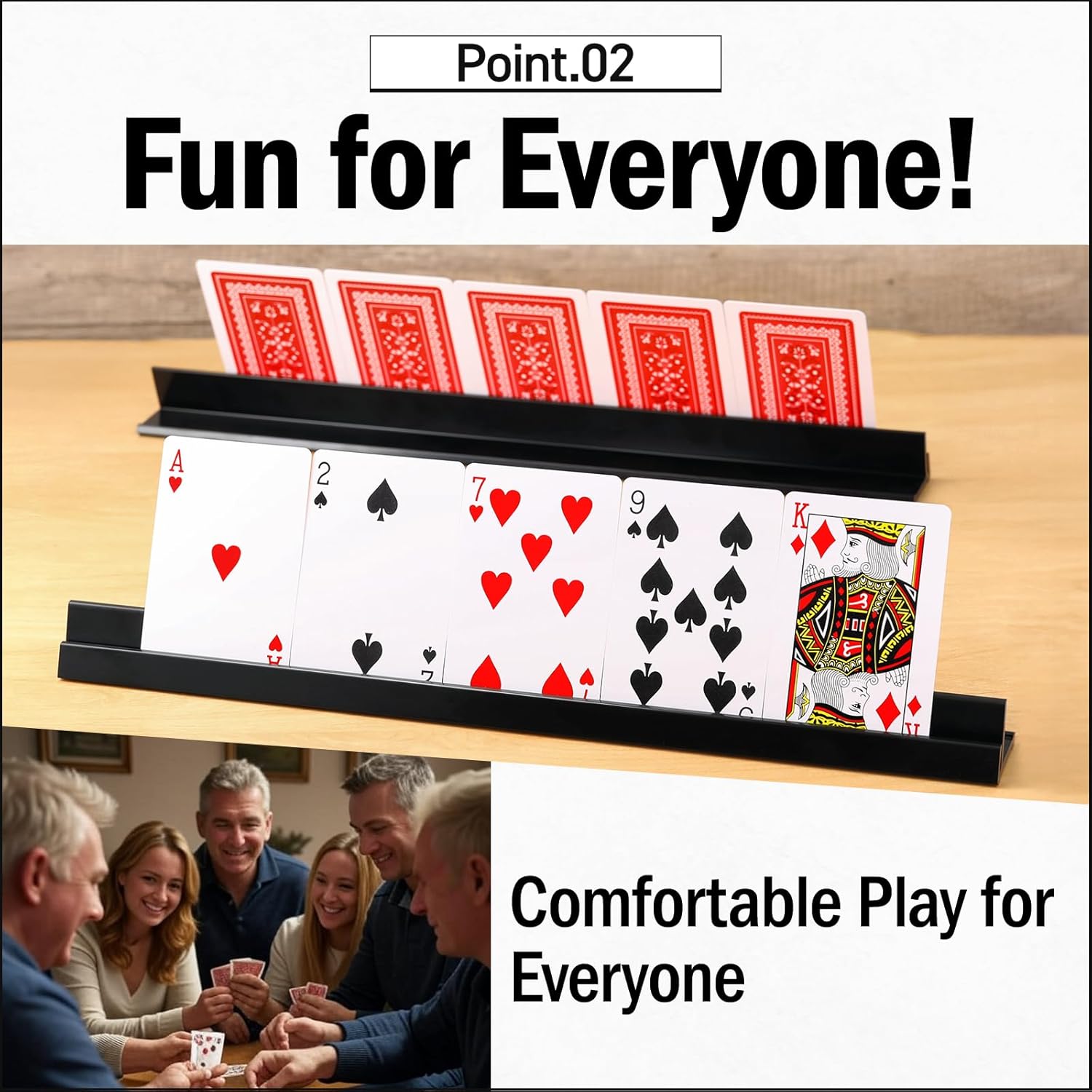 - This card holder stand can be resolved any problem when we hold cards in our hand. For example, we can eat and drink while playing card game.
